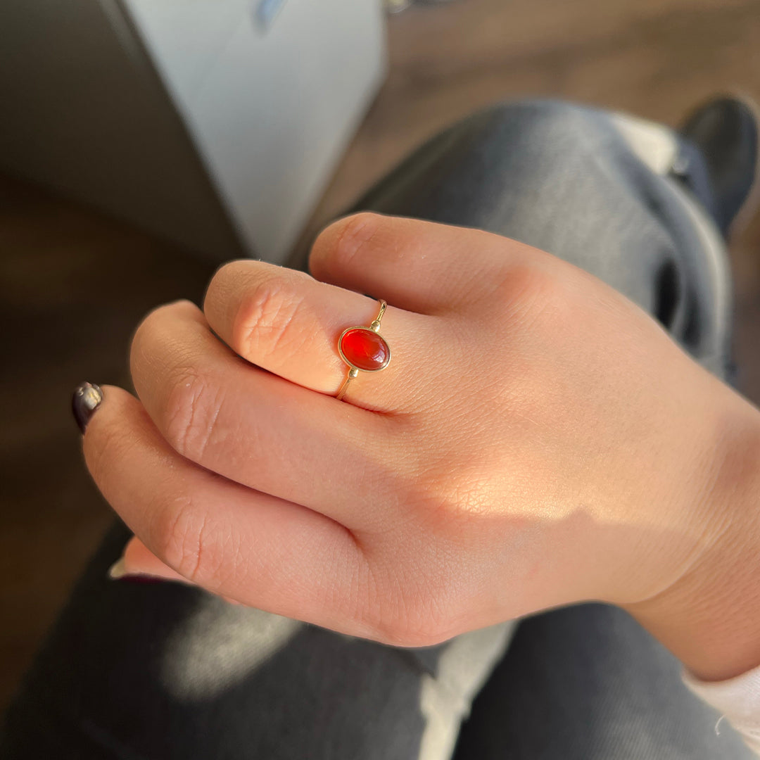 Hems Jewellery 14 Ayar Altın Carnelian Taşlı Yüzük