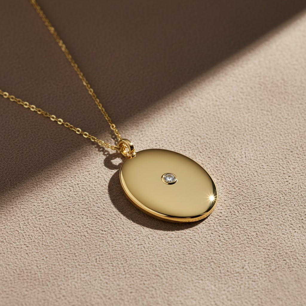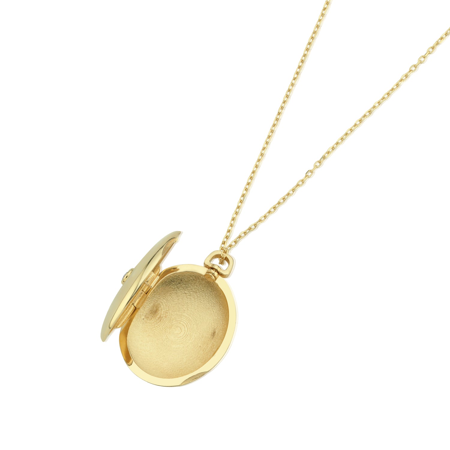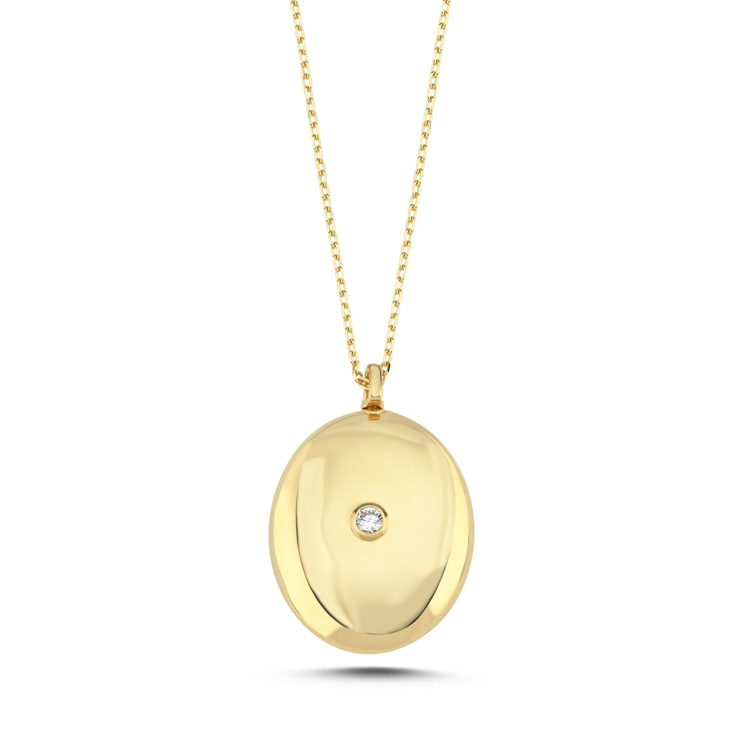 14 Ayar Altın Kapaklı Düz Oval Altın Pırlantalı Madalyon Kolye