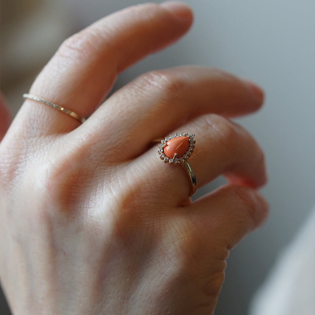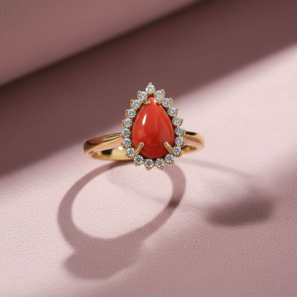 14 Ayar Altın Pırlanta Taşlı Mercan Yüzük