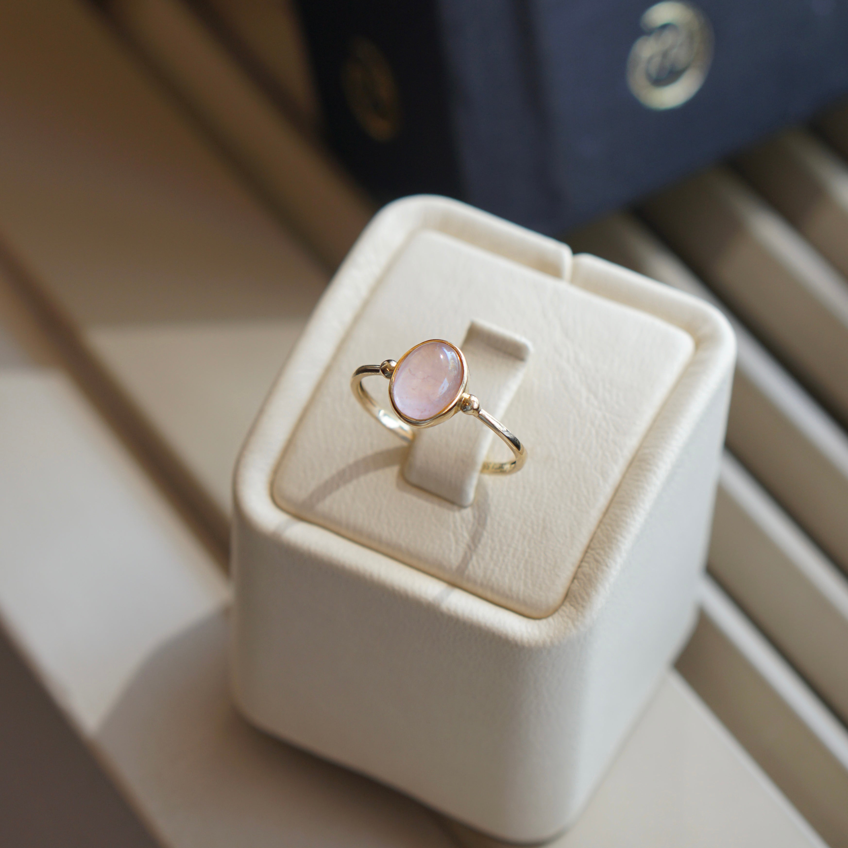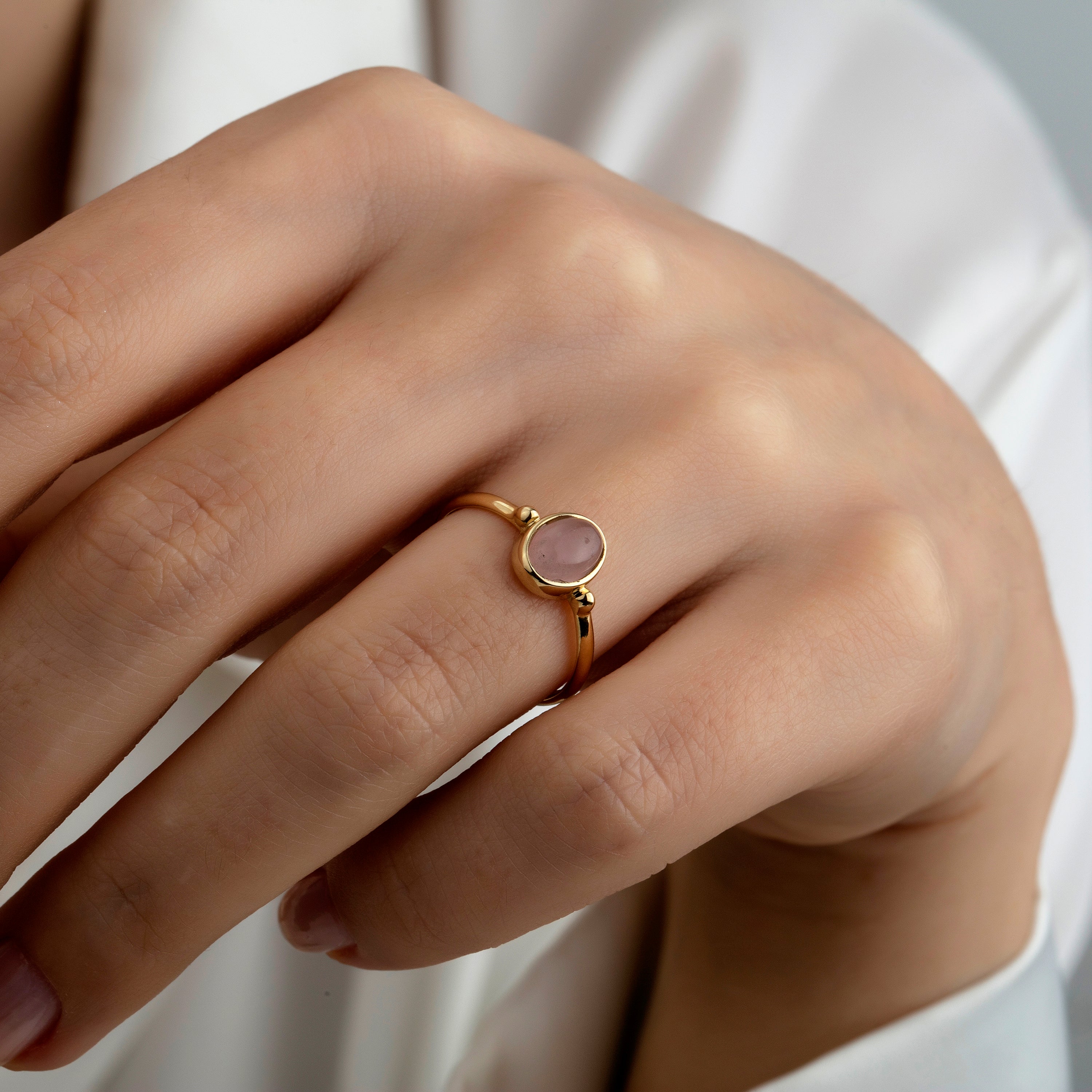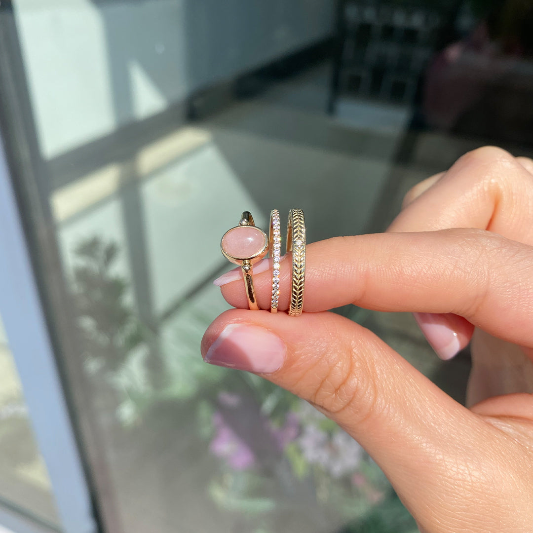 Hems Jewellery 14 Ayar Altın Pembe Kuars Taşlı Yüzük