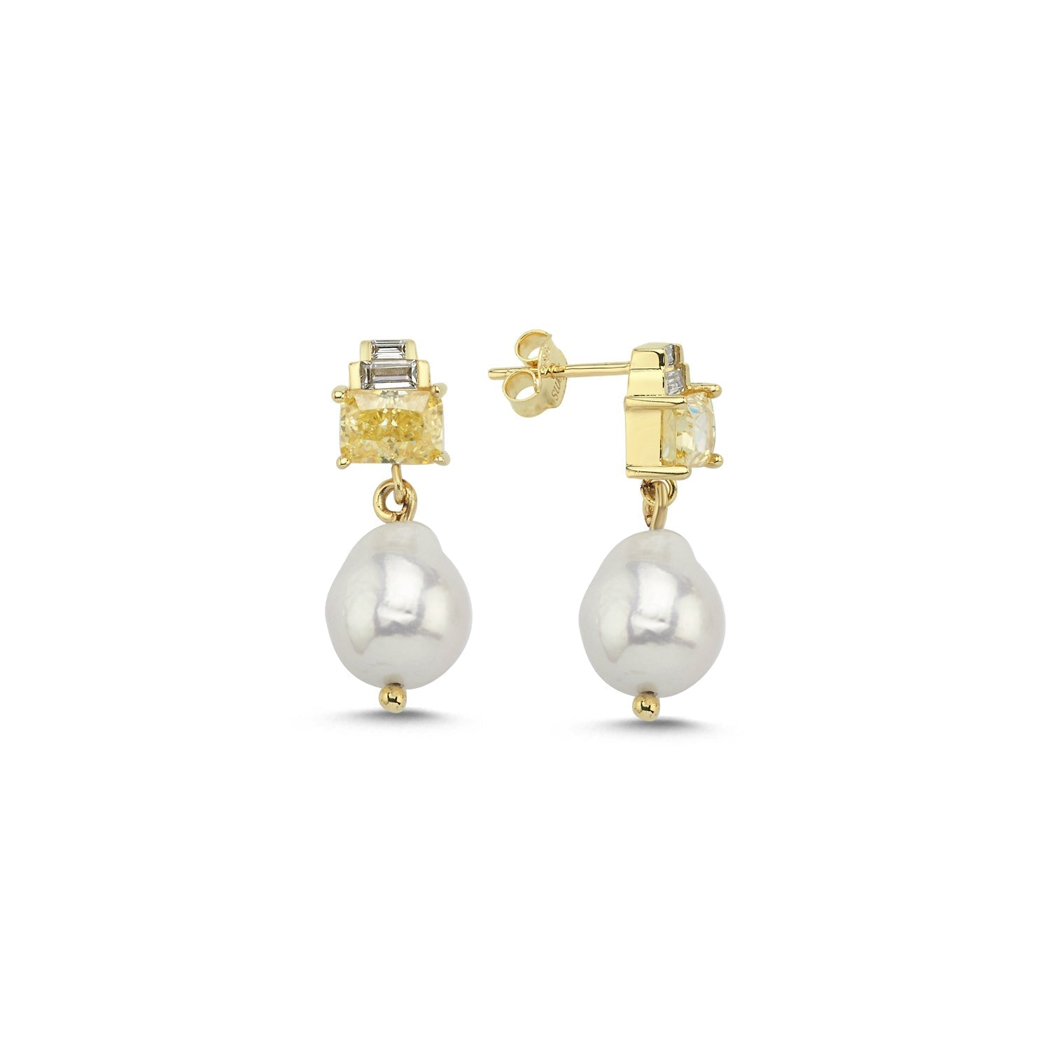 14 Ayar Altın Tiny Sparkles Double Baget Barok İnci Küpe (S)
