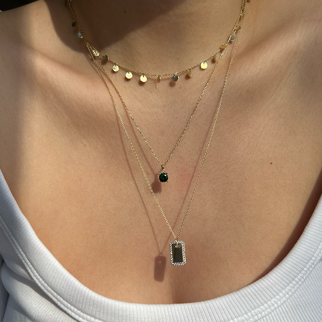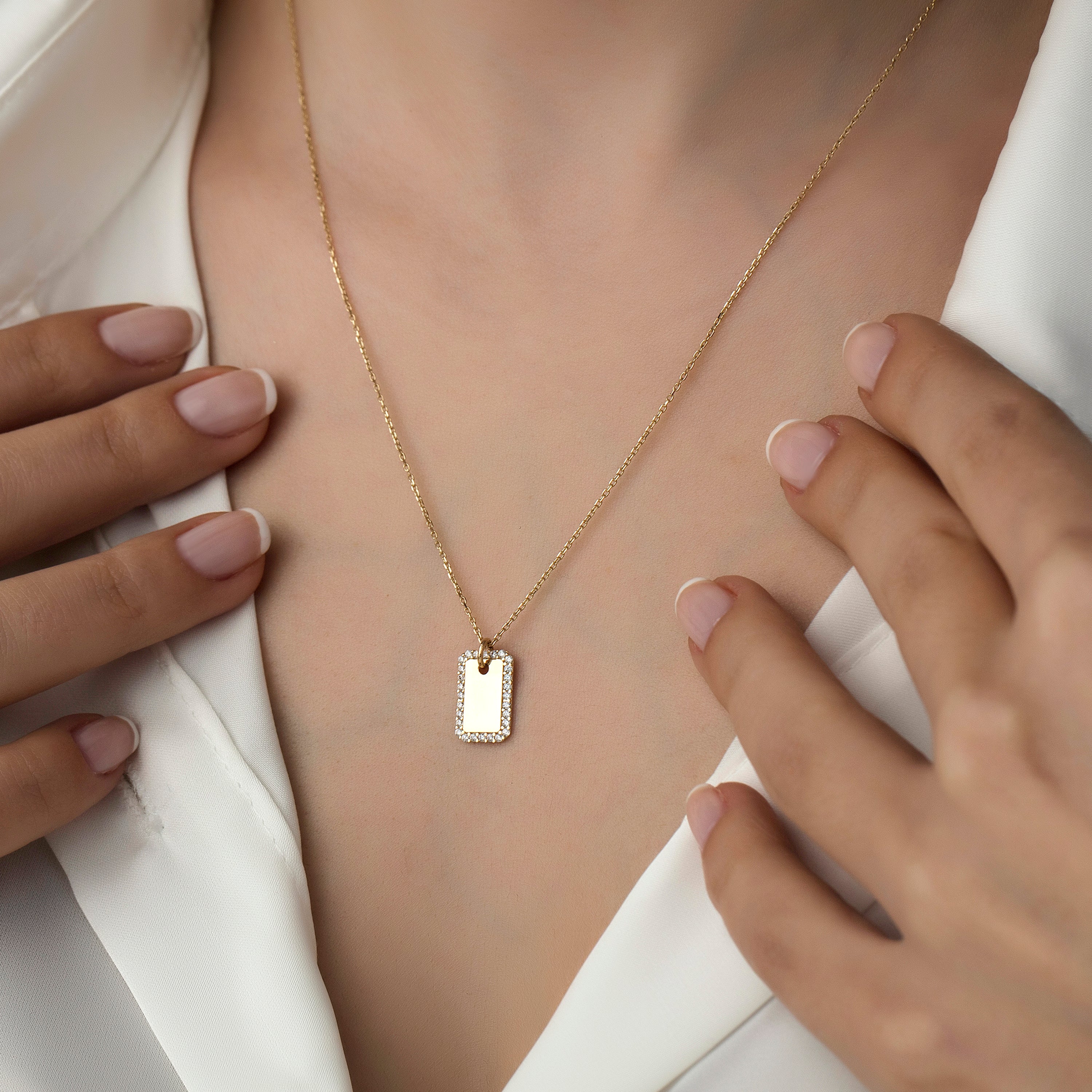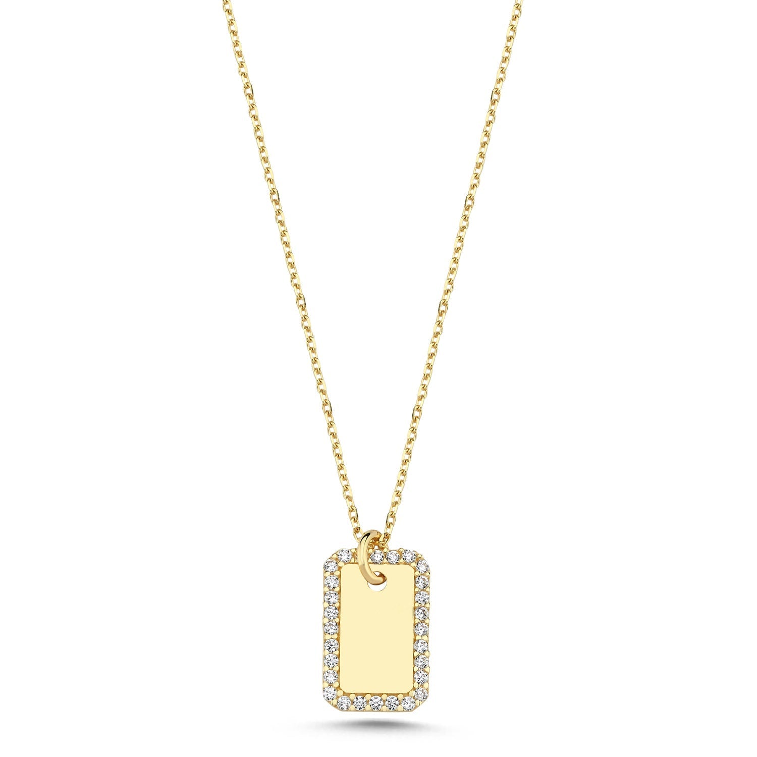 14 Ayar Altın Minimal Taş Plaka Kolye