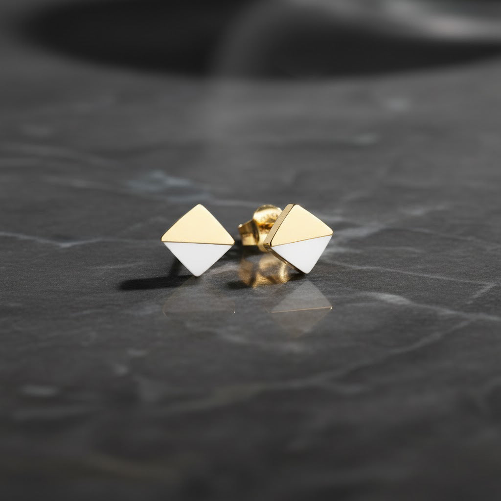 Hems Jewellery 14 Ayar Altın Minimal Sedef Kare Saplama Küpe