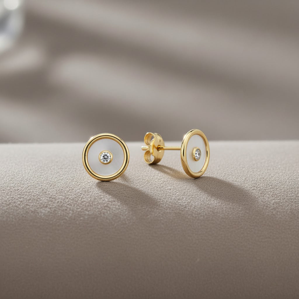 14 Ayar Altın Minimal Taşlı Sedef Çivi Küpe