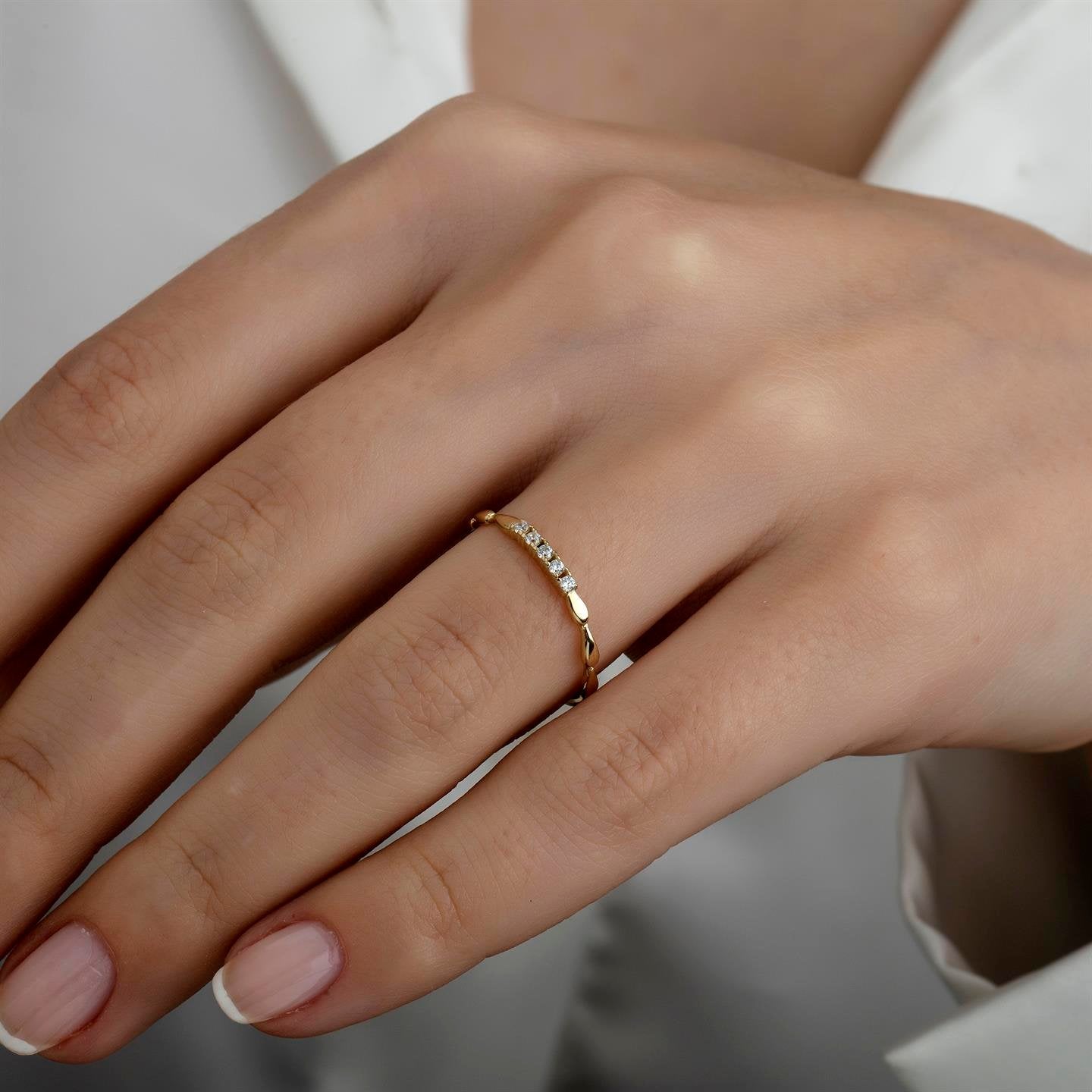 Hems Jewellery Altın Taşlı Kombinlenebilir Mekik Yüzük