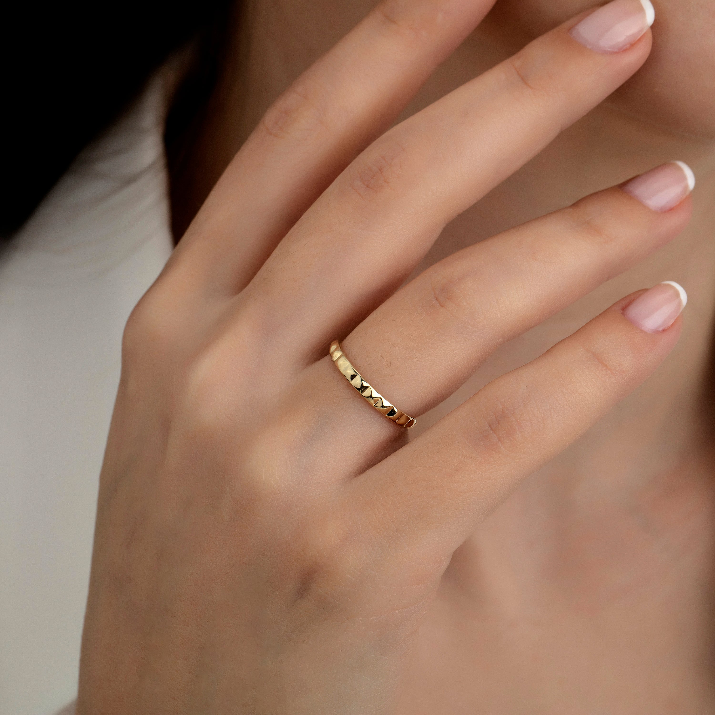 14 Ayar Altın Toblerone Kombinlenebilir Minimal Yüzük