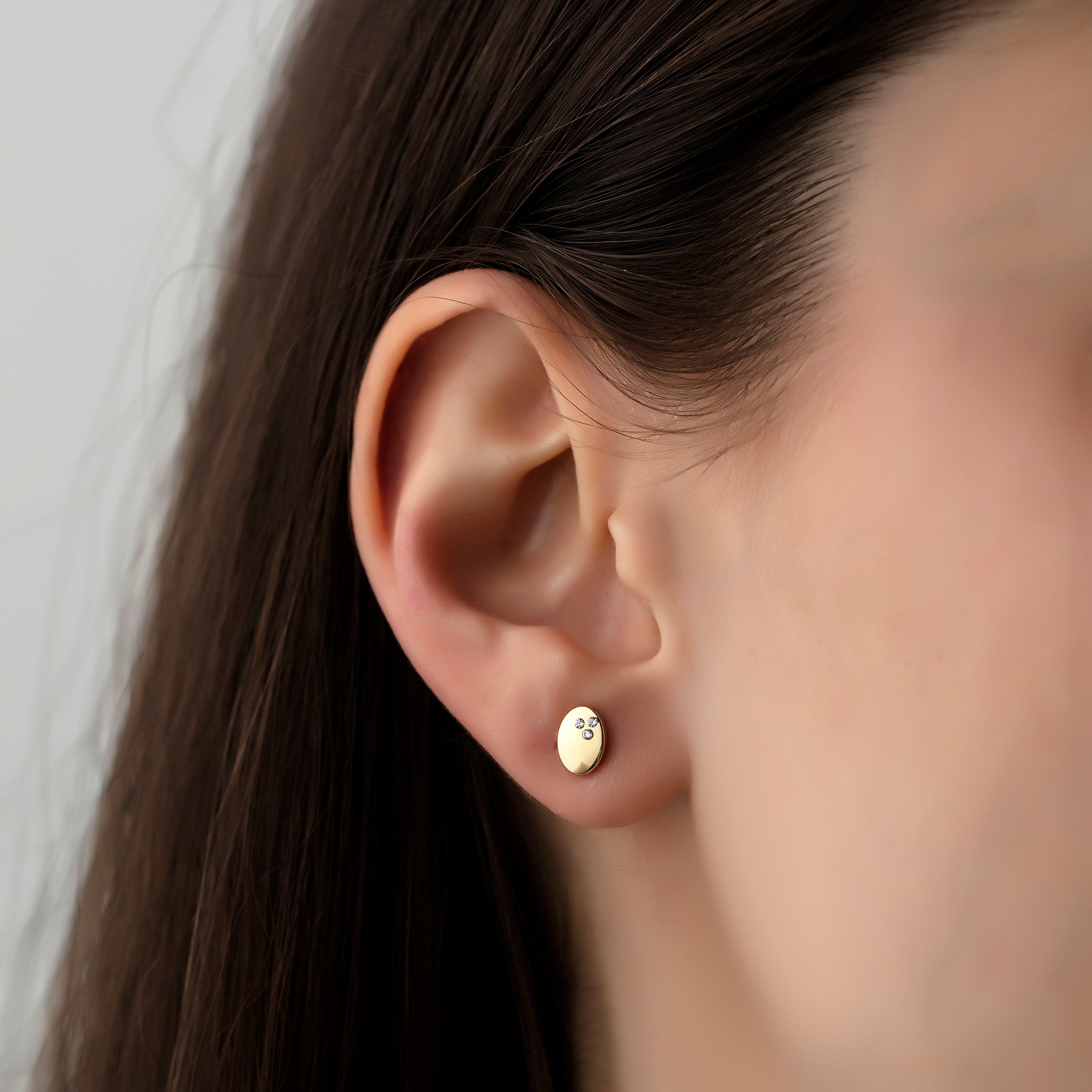 14 Ayar Altın Minimal Tria Elips Vidalı Küpe