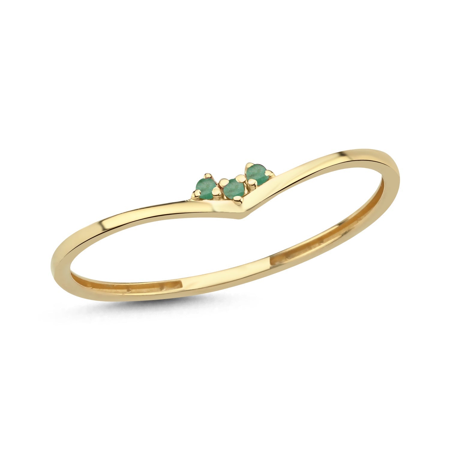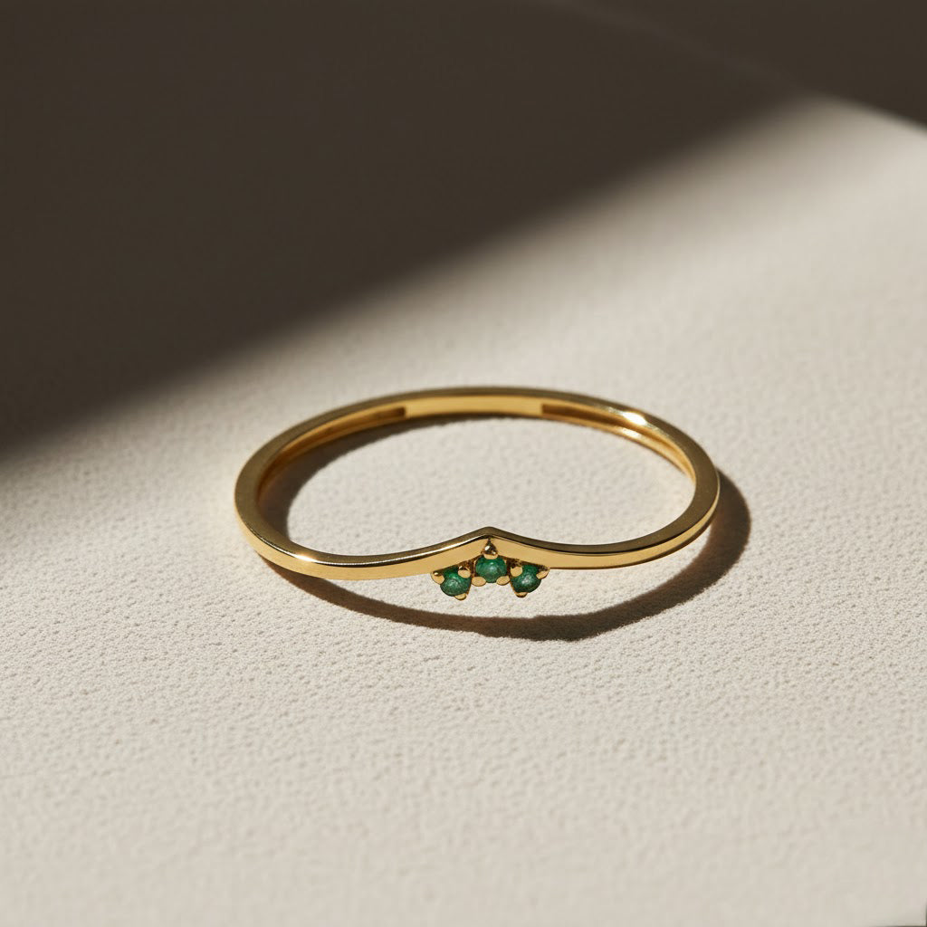 Hems Jewellery 14 Ayar Altın Minimal Tria Zümrüt Yüzük