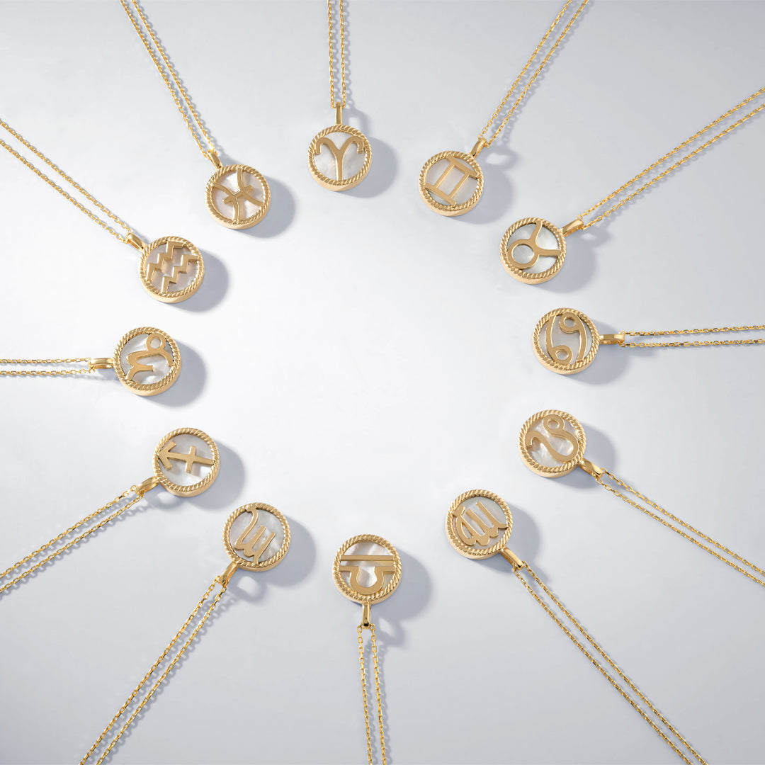 14 Ayar Altın Sedef Burç Kolye