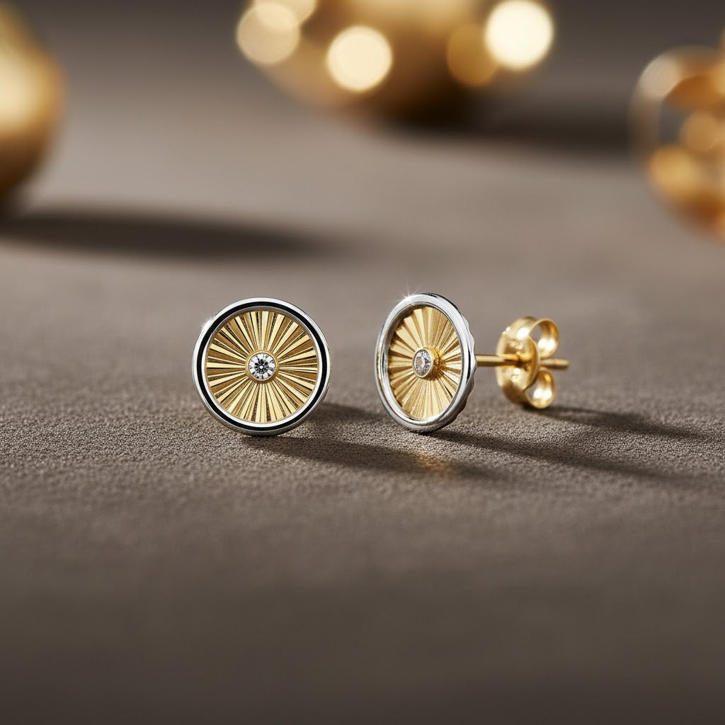 14 Ayar Altın Pırlanta Disk Çivi Küpe