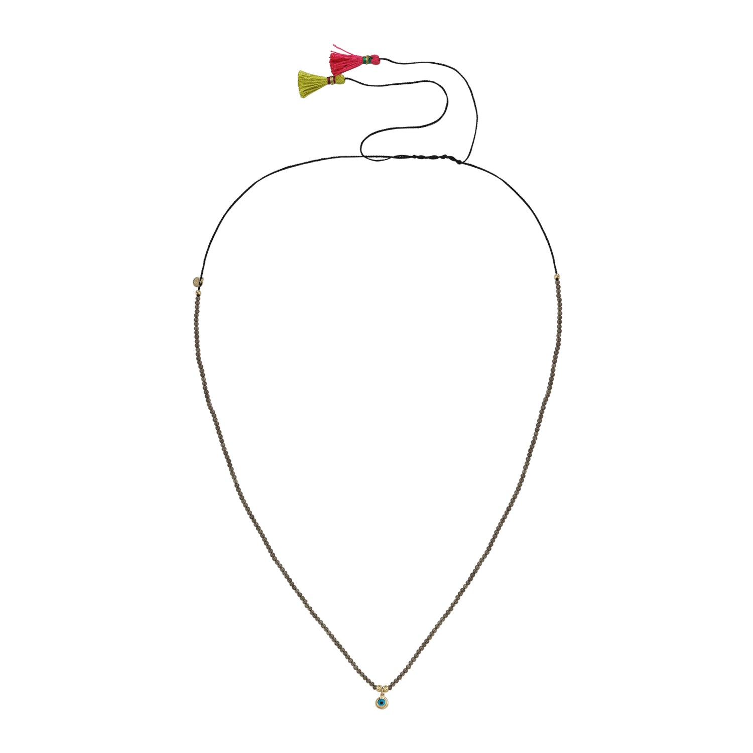 14 Ayar Altın Dumanlı Kuars Taşlı Nazar Püsküllü Kolye