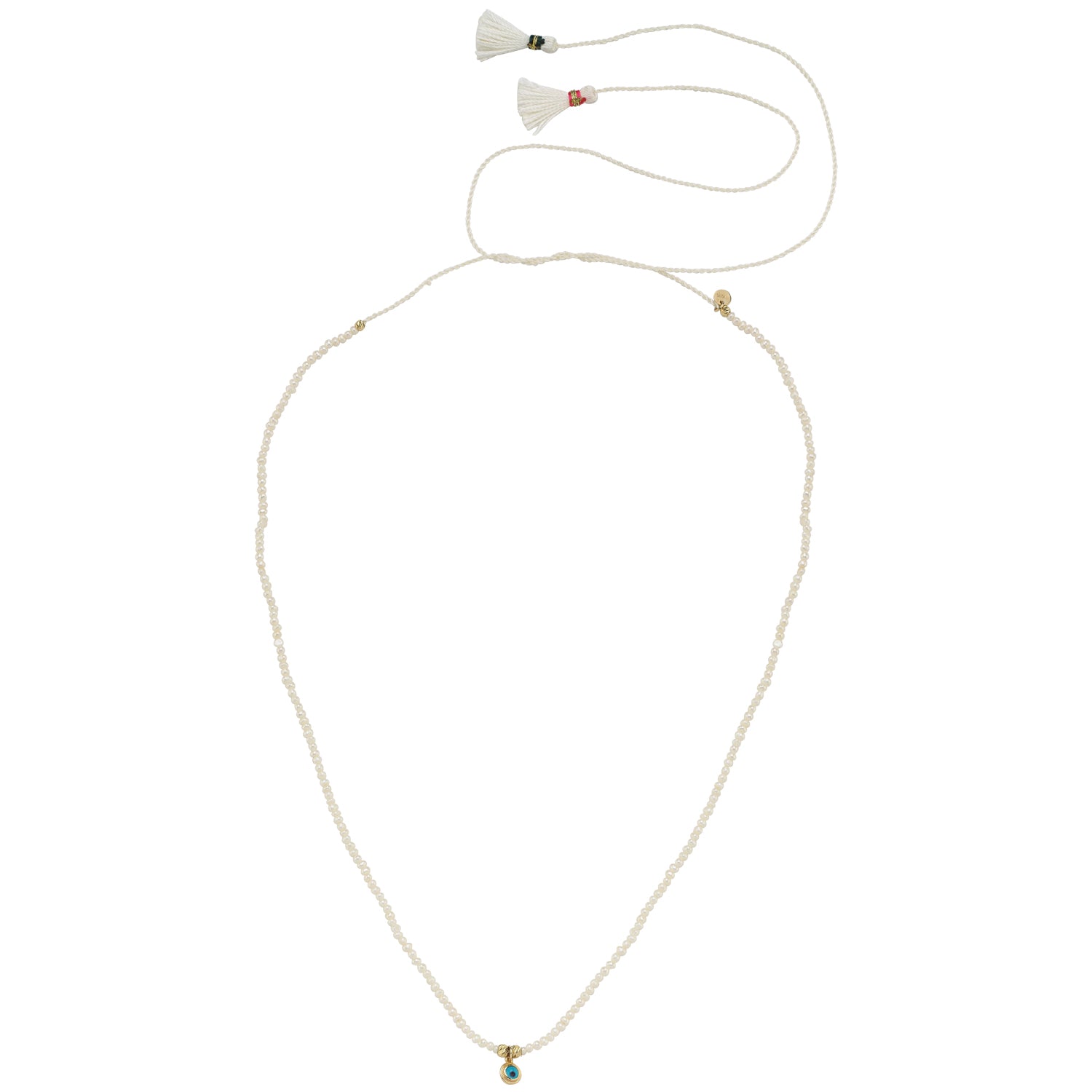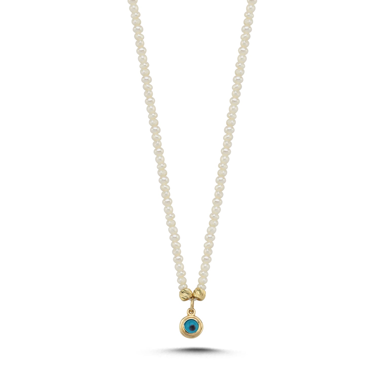 14 Ayar Altın İnci Taşlı Nazar Püsküllü Kolye