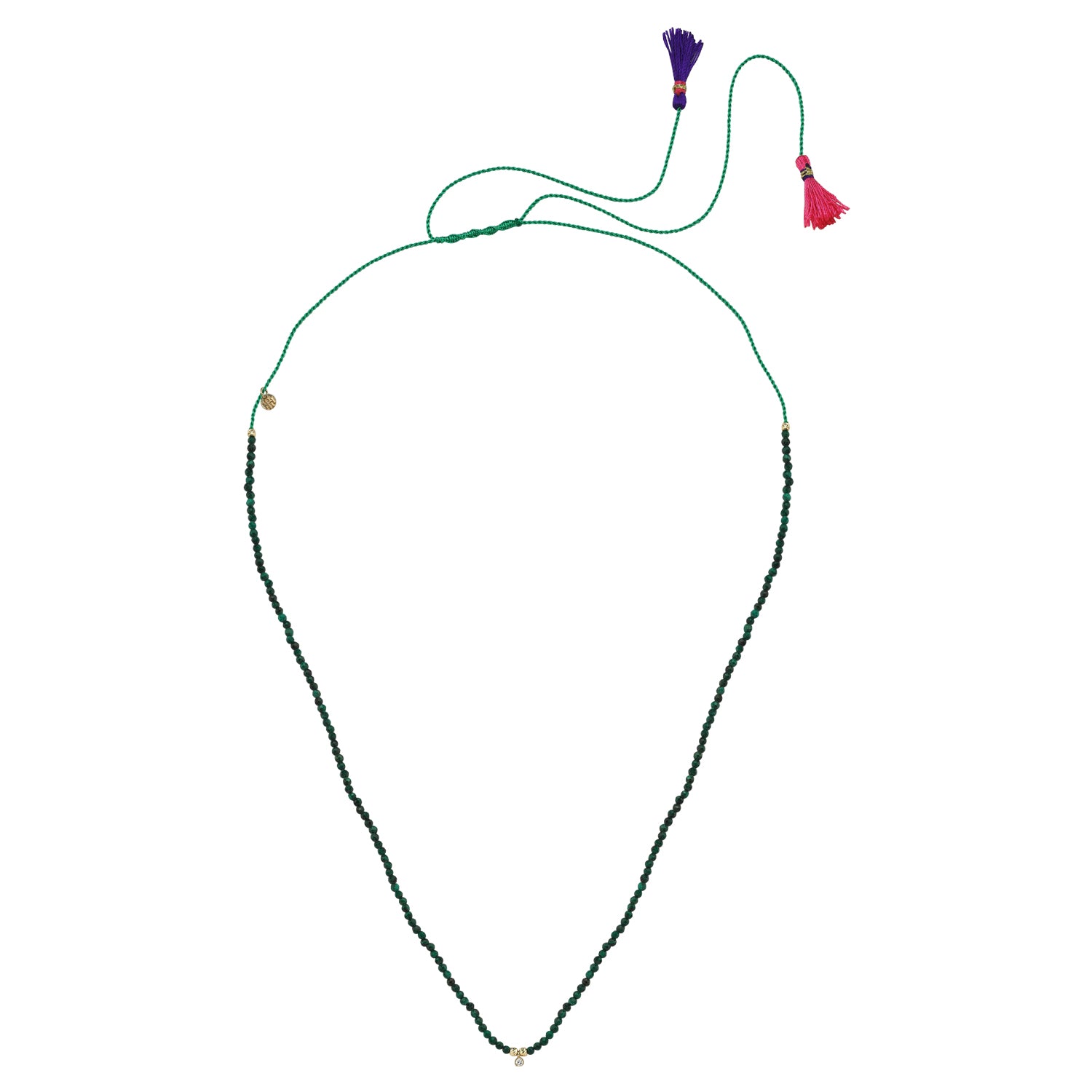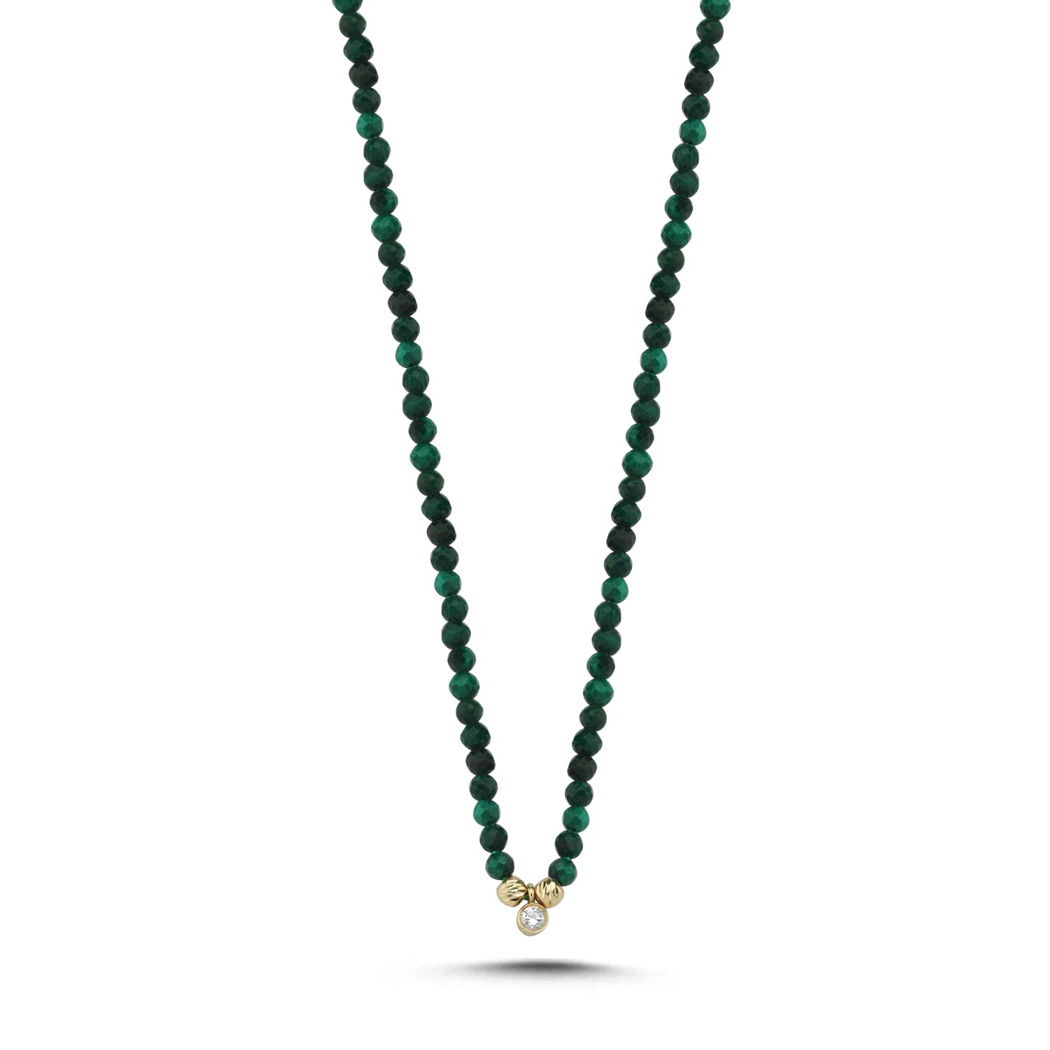 14 Ayar Altın Malahit Taşlı Pırlanta Püsküllü Kolye