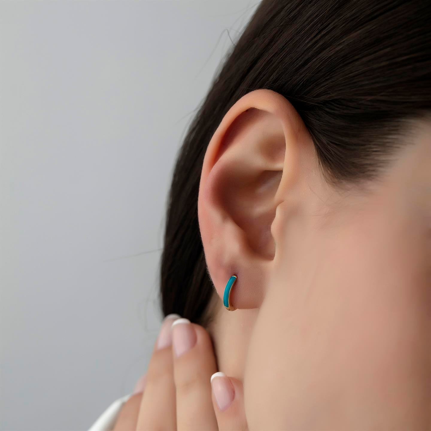 Hems Jewellery Mini Turkuaz Mineli Halka Küpe