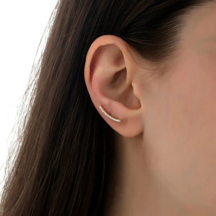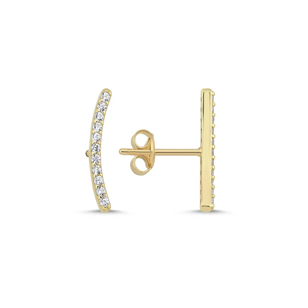 14 Ayar Altın Minimal Taşlı Küpe