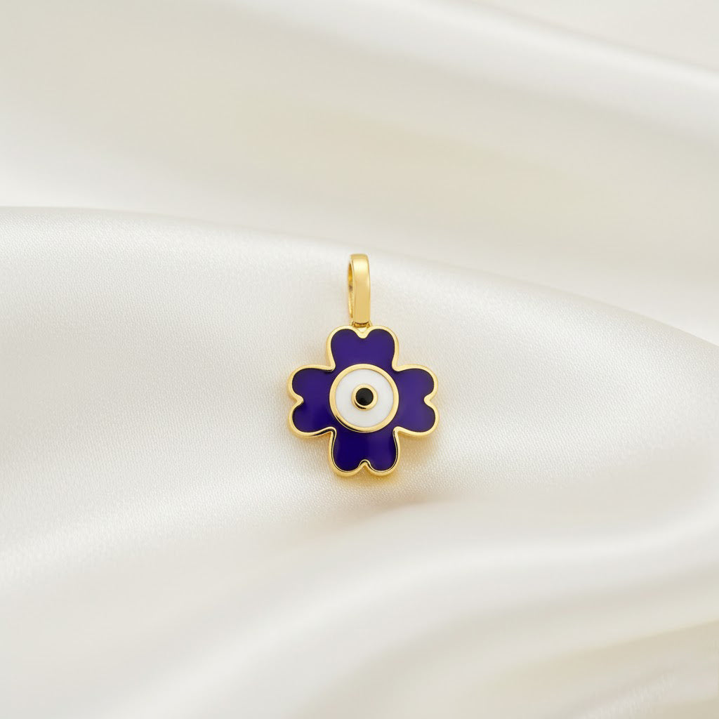 14 Ayar Altın Nazar Yonca Kolye
