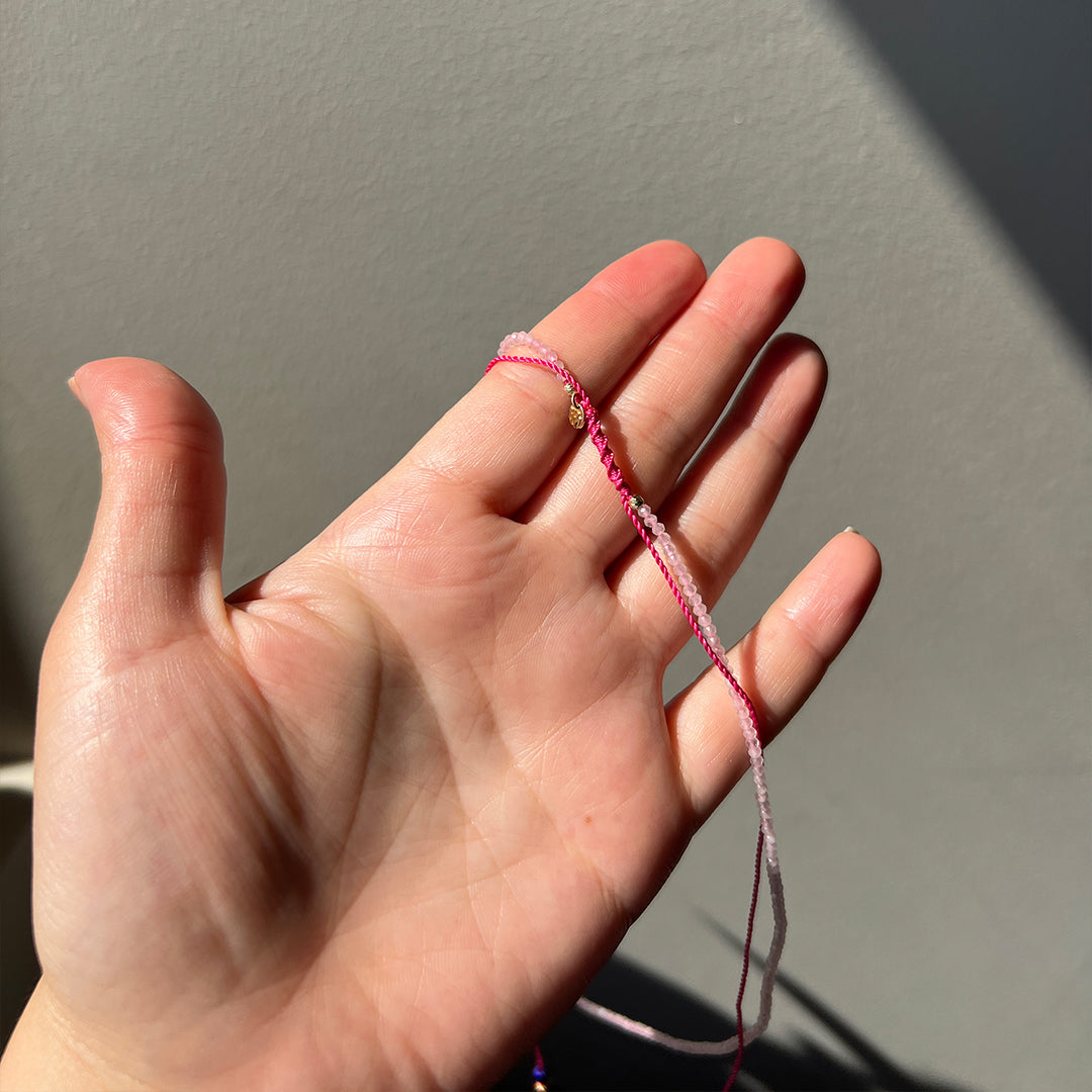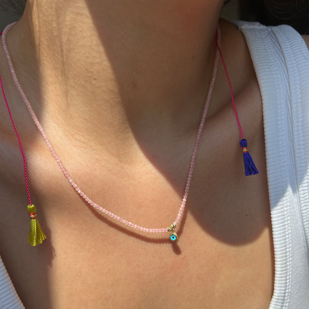 14 Ayar Altın Pink Kuars Taşlı Nazar Püsküllü Kolye