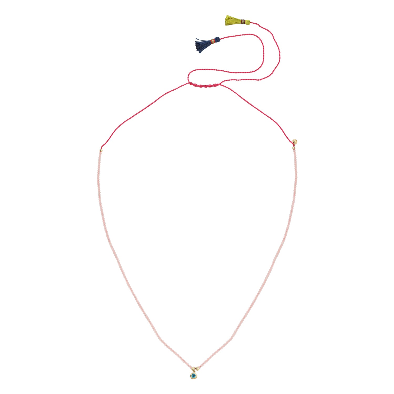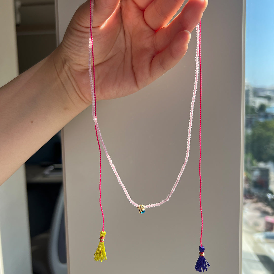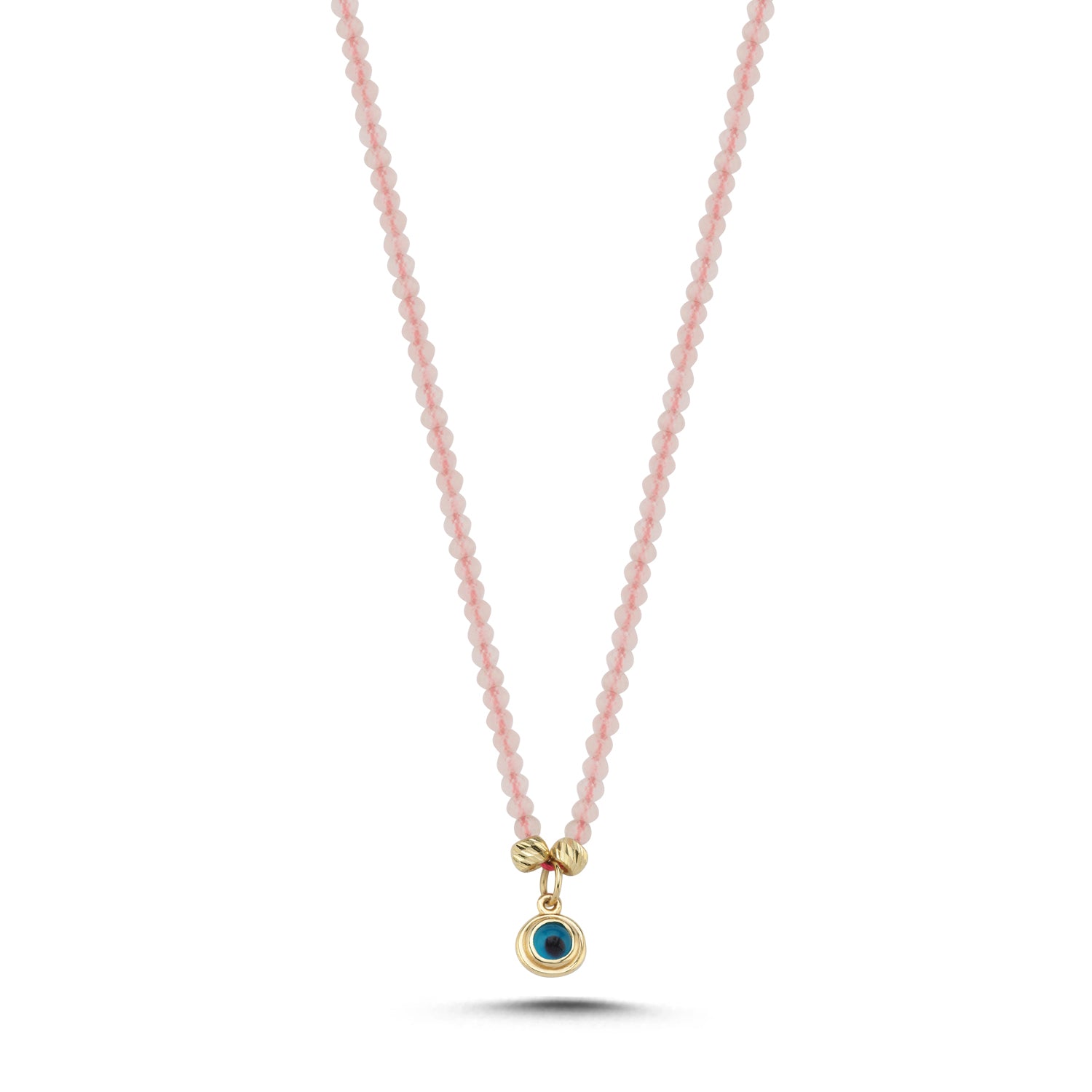 14 Ayar Altın Pembe Kuars Taşlı Nazar Püsküllü Kolye