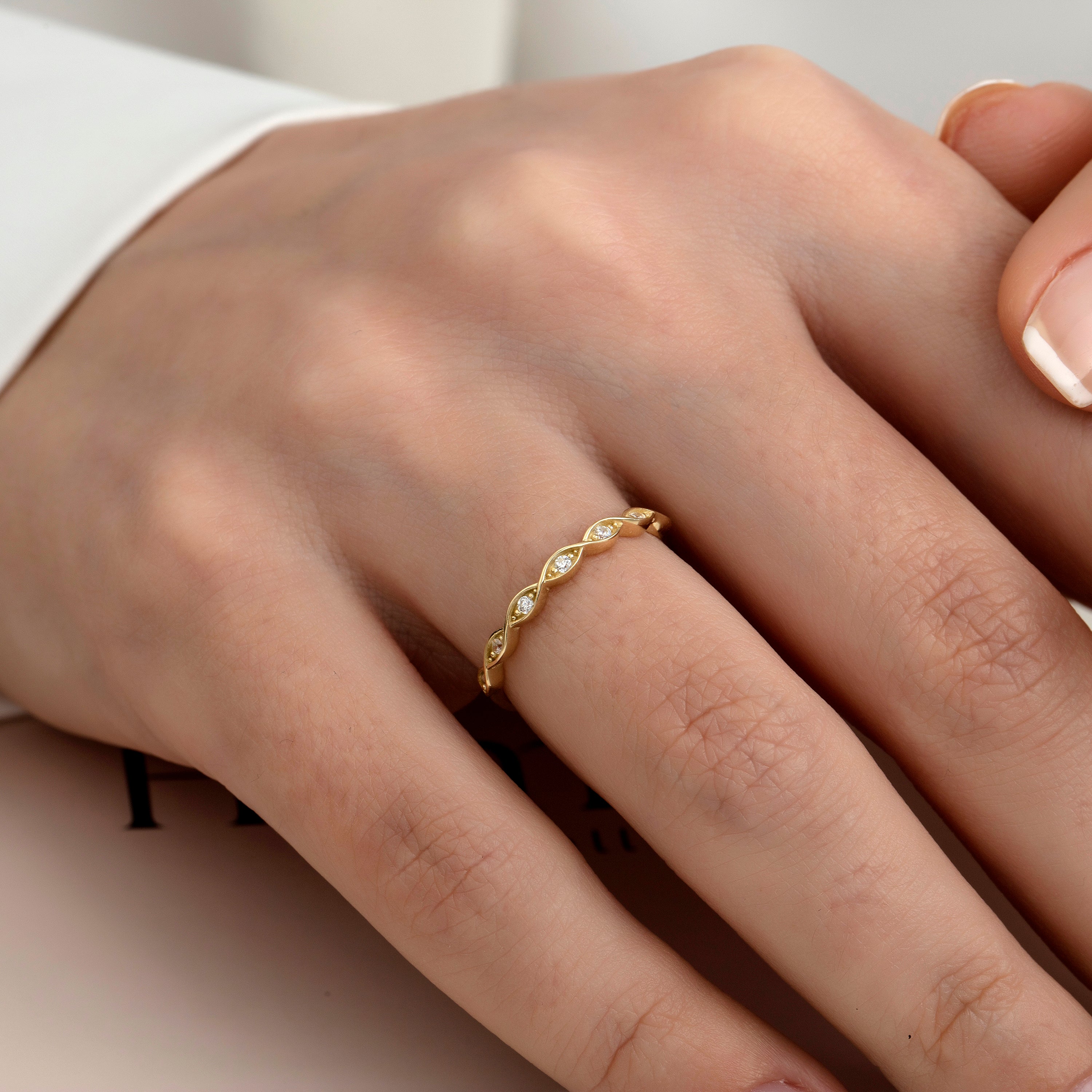 14 Ayar Altın Taşlı Mekik Kombinlenebilir Minimal Yüzük