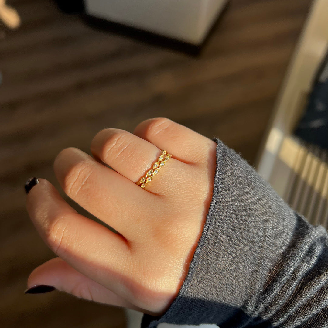 Hems Jewellery Altın Taşlı Mekik Kombinlenebilir Minimal Yüzük