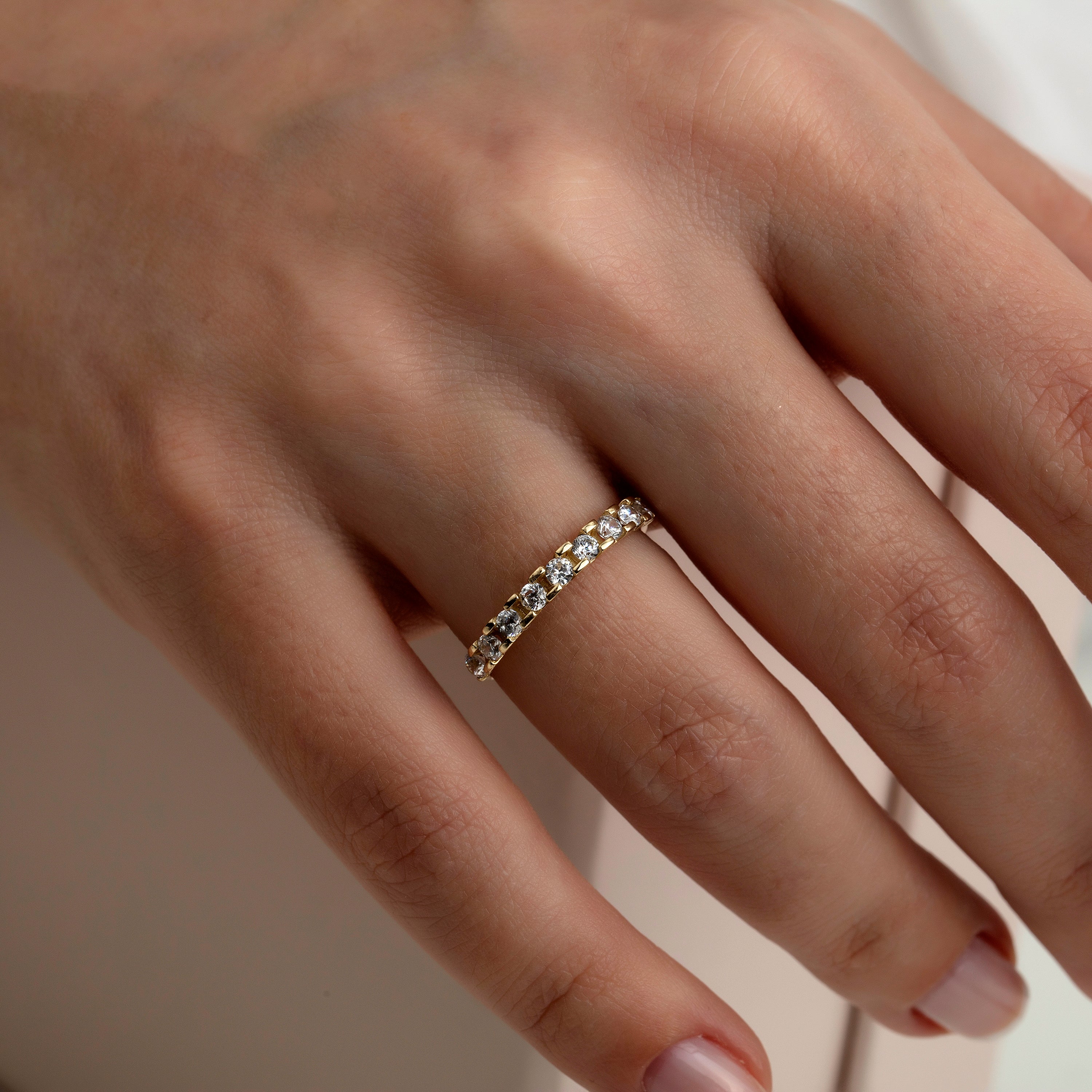 Hems Jewellery Yarım Tur Minimal Kombinlenebilir Altın Taşlı Yüzük