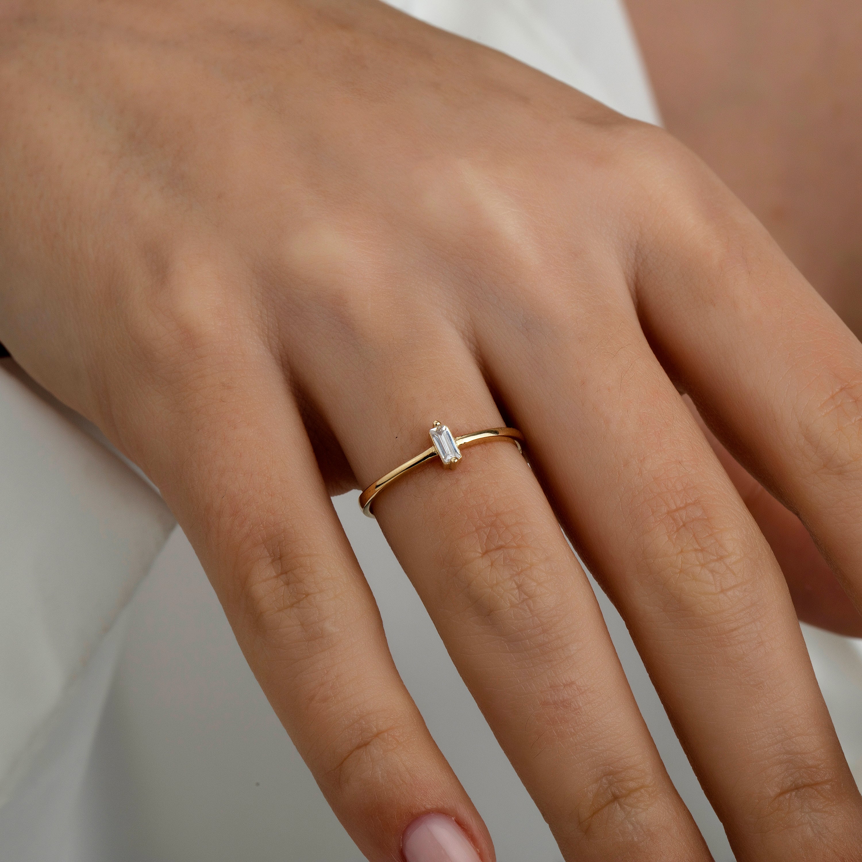 Hems Jewellery Tek Taş Baget Yüzük