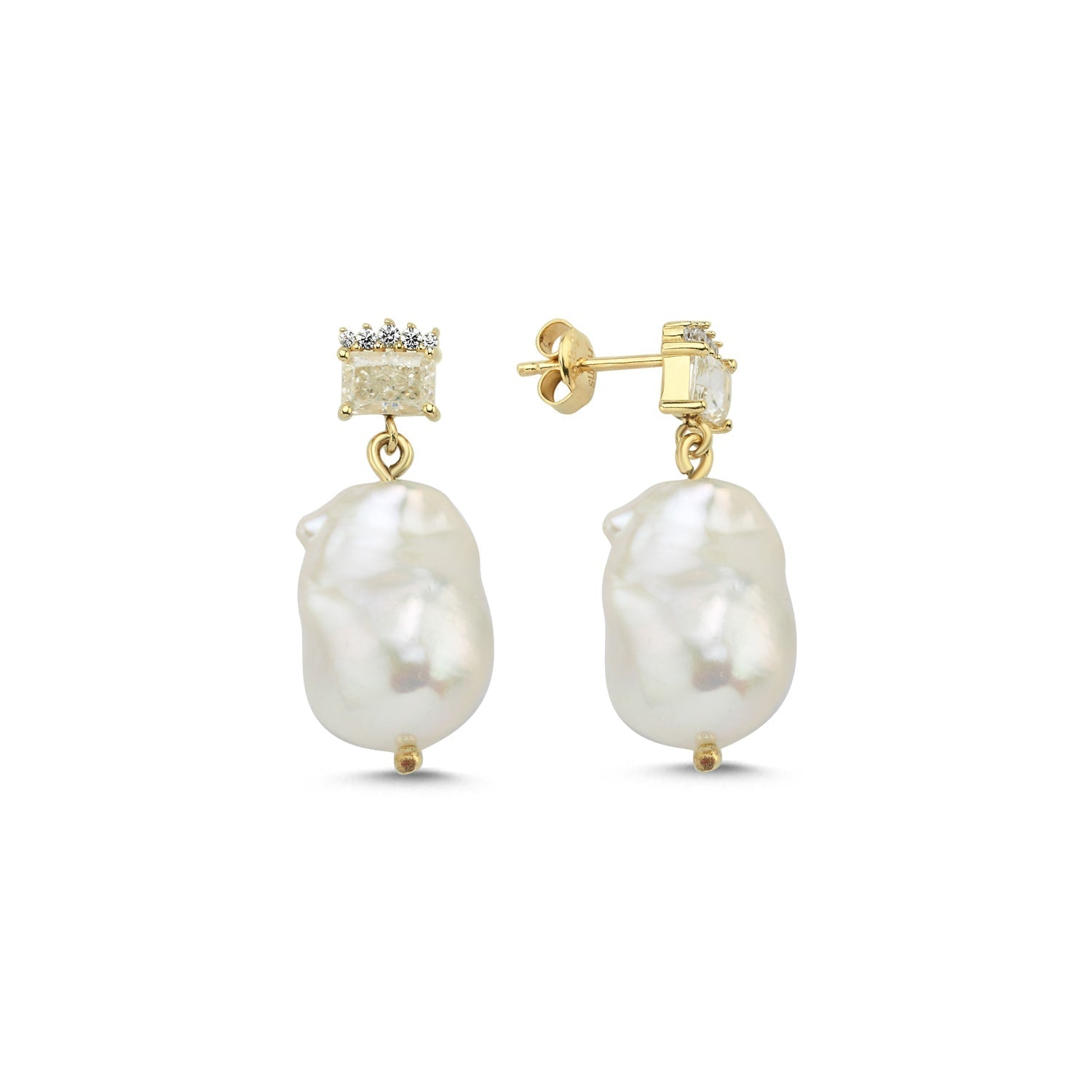14 Ayar Altın Tiny Sparkles Baget Barok İnci Küpe (L)