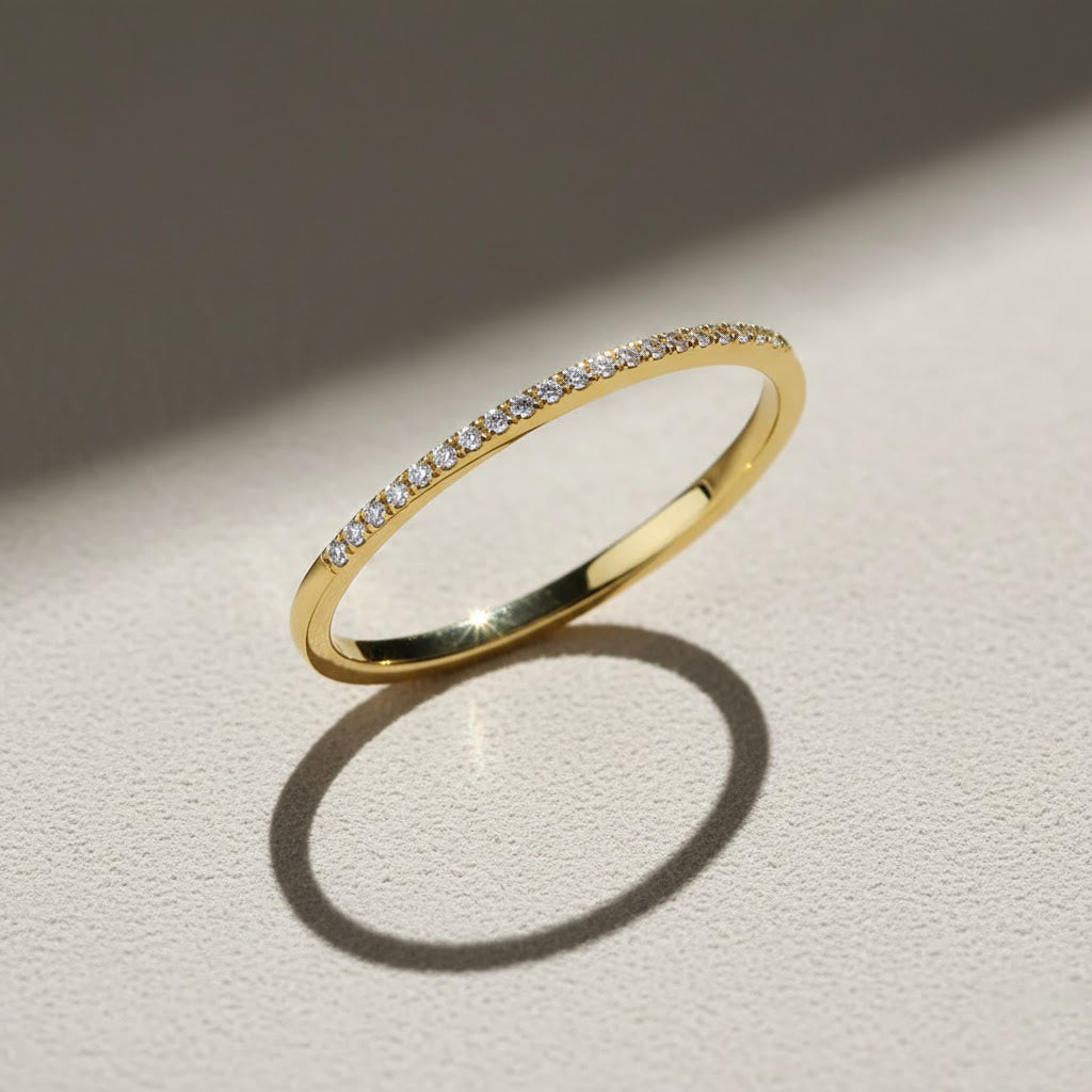 14 Ayar Altın Pırlanta Taşlı Minimal Yarım Tur Yüzük