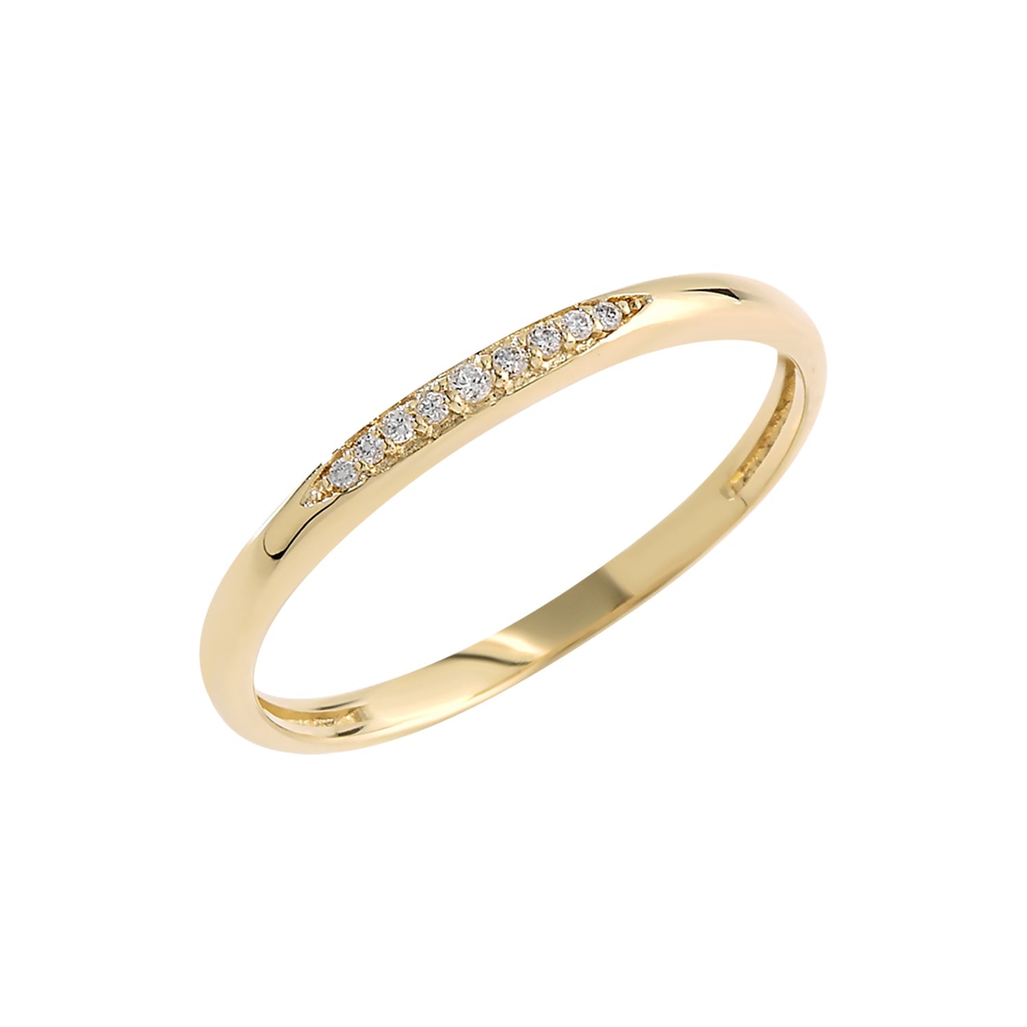 14 Ayar Altın Pırlanta Minimal Sıra Taşlı Yüzük