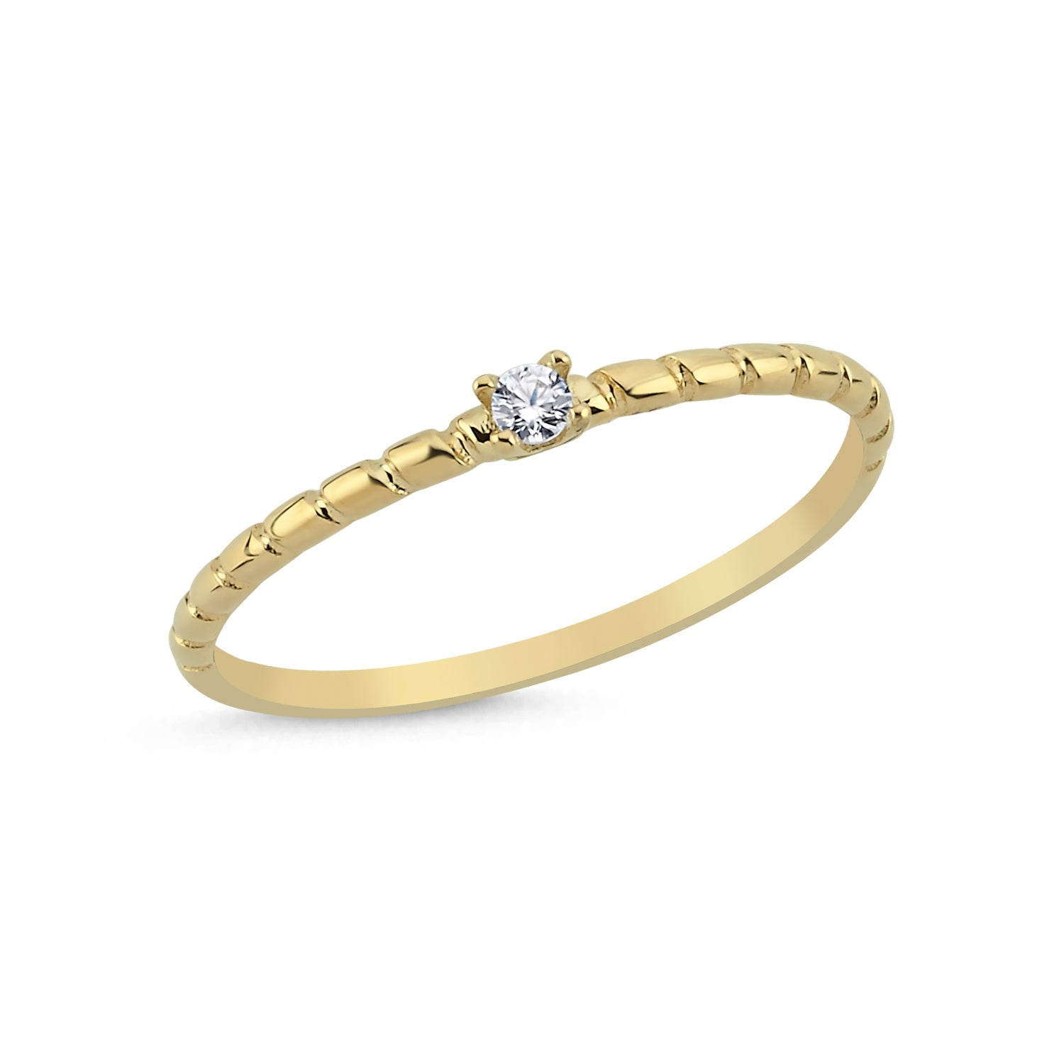 14 Ayar Altın Tek Taşlı Kombinlenebilir Minimal Yüzük