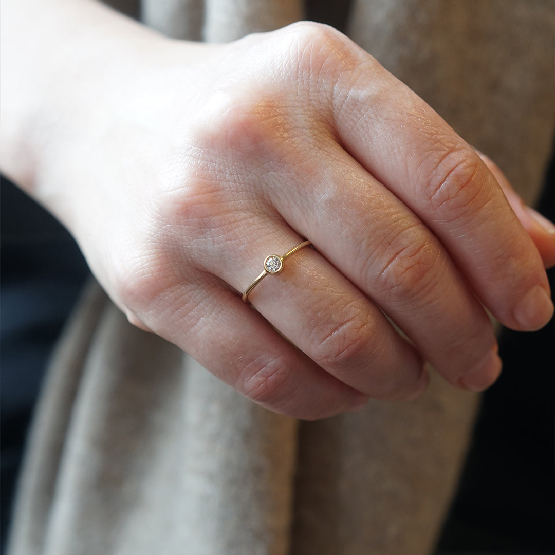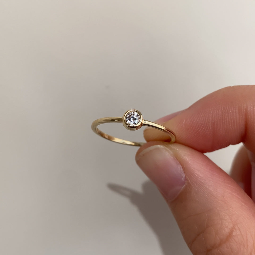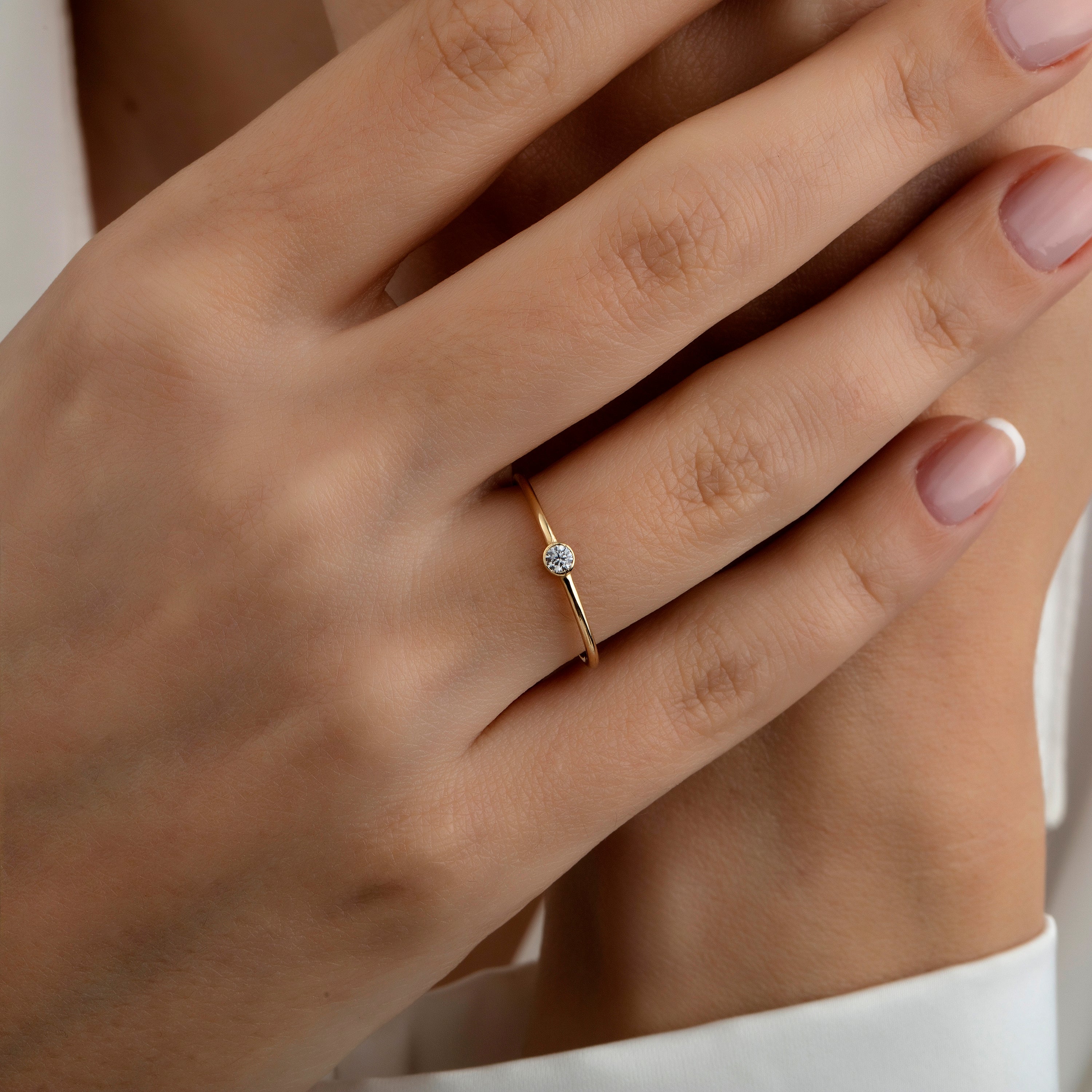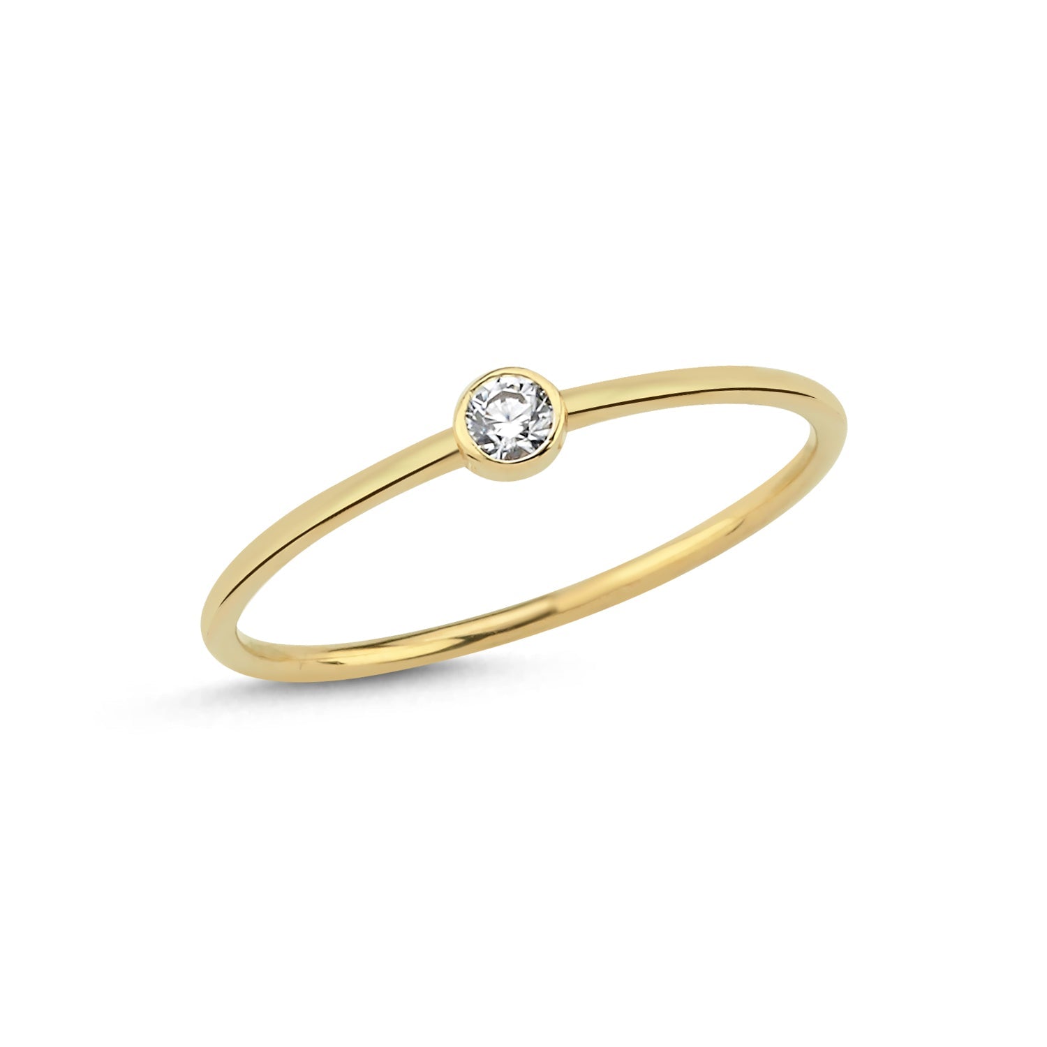 14 Ayar Altın Minimal Tek Taşlı Yüzük