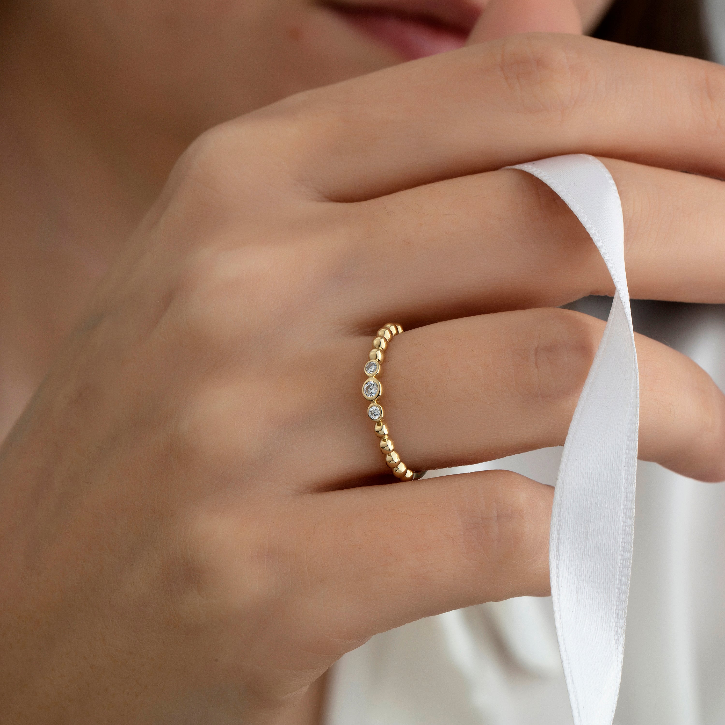 14 Ayar Altın Tria Taşlı Kombinlenebilir Minimal Yüzük
