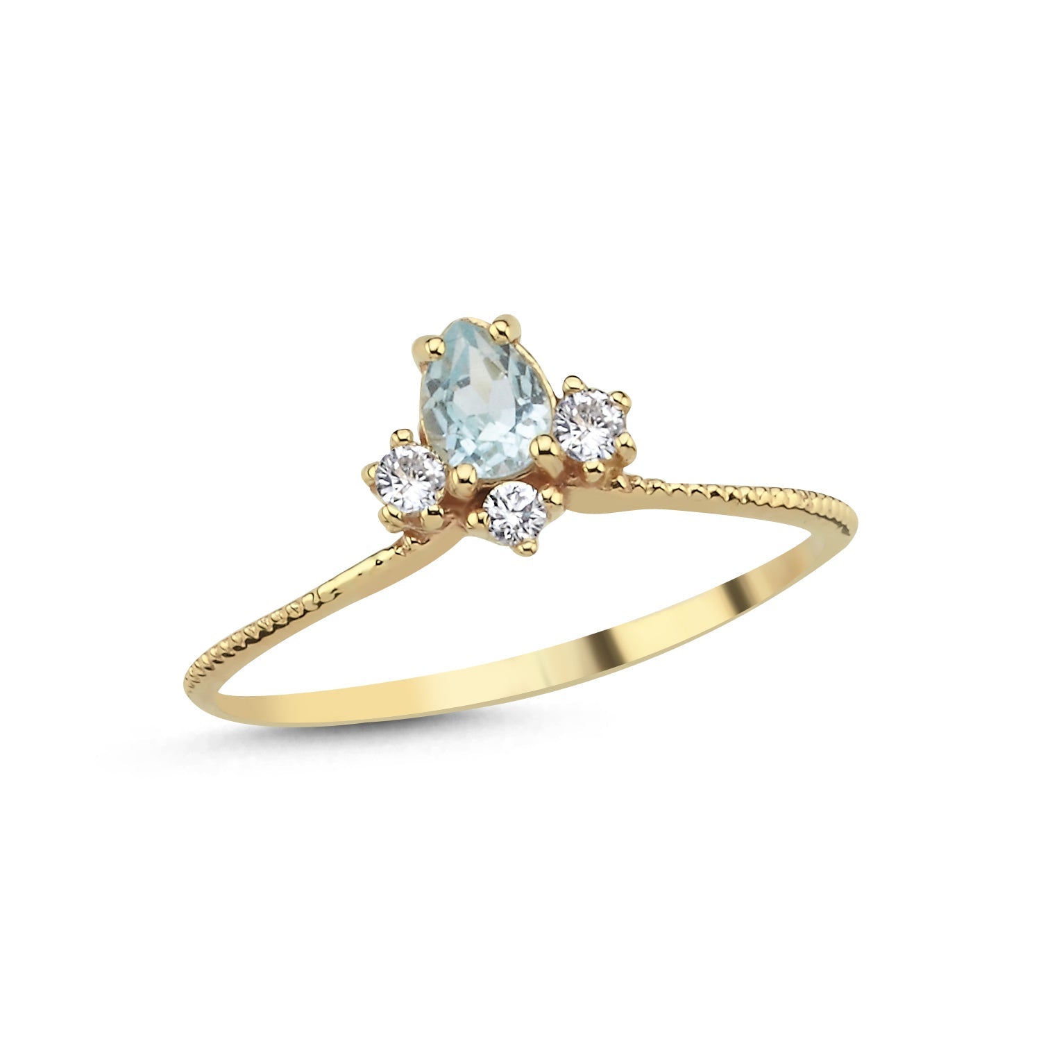 Hems Jewellery 14 Ayar Altın Vintage Pırlanta Akuamarin Yüzük