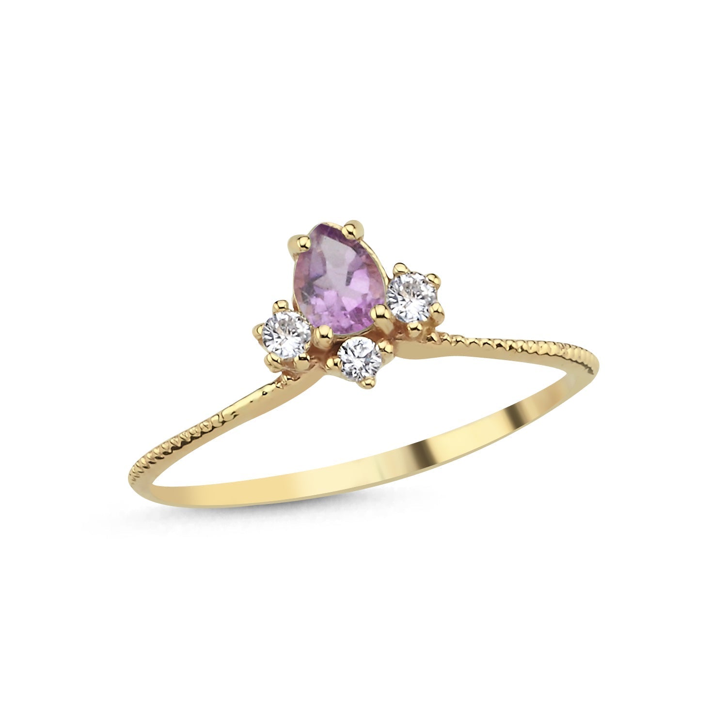 Hems Jewellery 14 Ayar Altın Vintage Pırlanta Ametist Yüzük