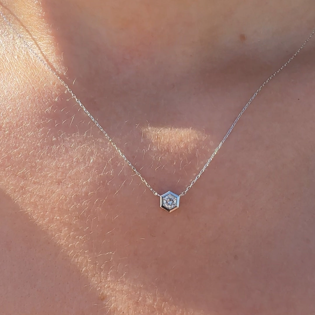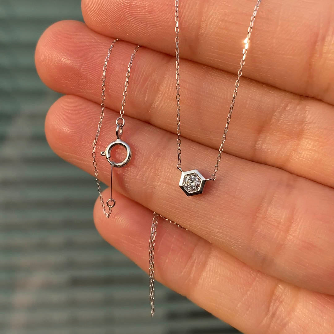 18 Ayar Altın Altıgen Pırlanta Beyaz Kolye