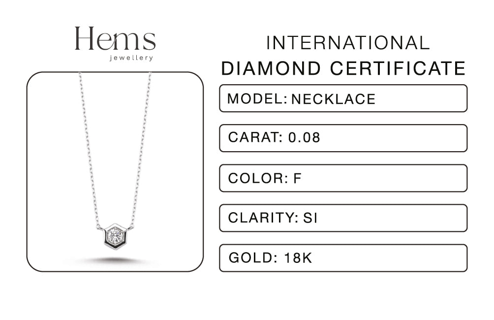 Hems Jewellery 18 Ayar Altın Altıgen Pırlanta Kolye