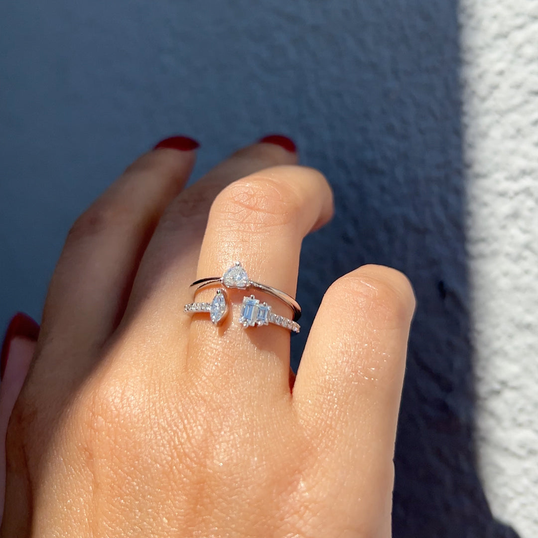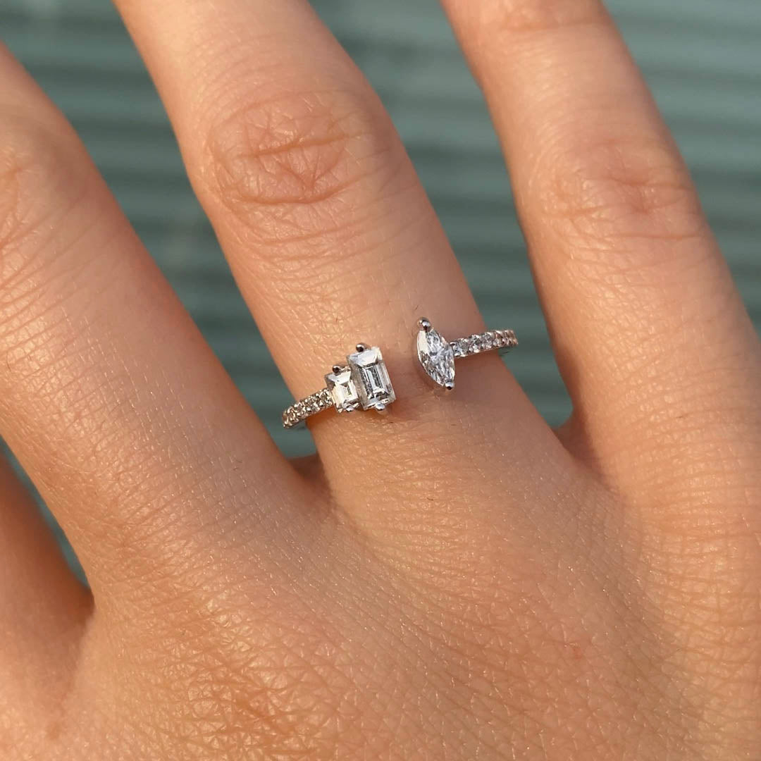 Hems Jewellery 18 Ayar Baget Kesim Pırlanta Açık Manşet Yüzük