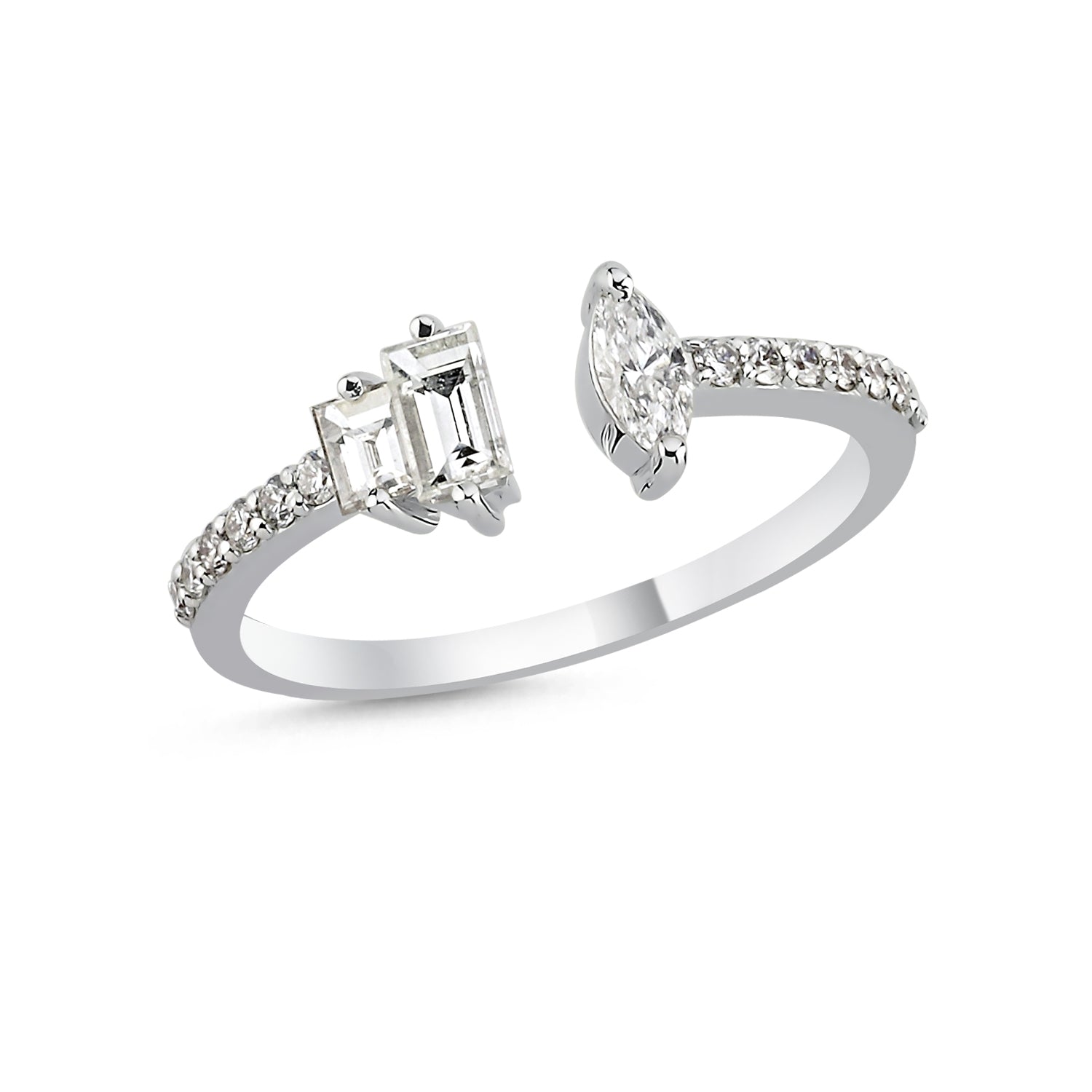18 Ayar Altın Baget Kesim Pırlanta Açık Manşet Beyaz Yüzük