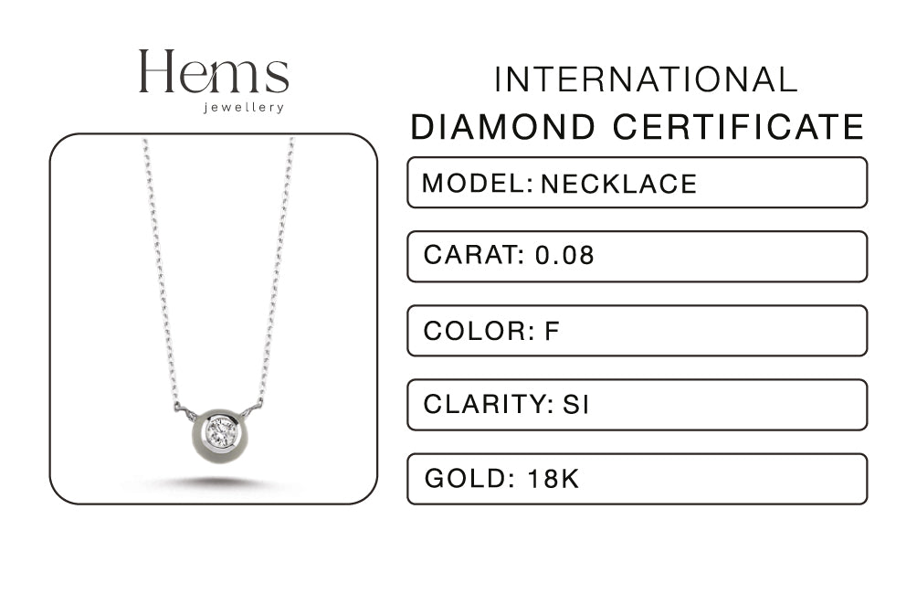Hems Jewellery 18 Ayar Altın Çerçeve Pırlanta Tek Taş Kolye