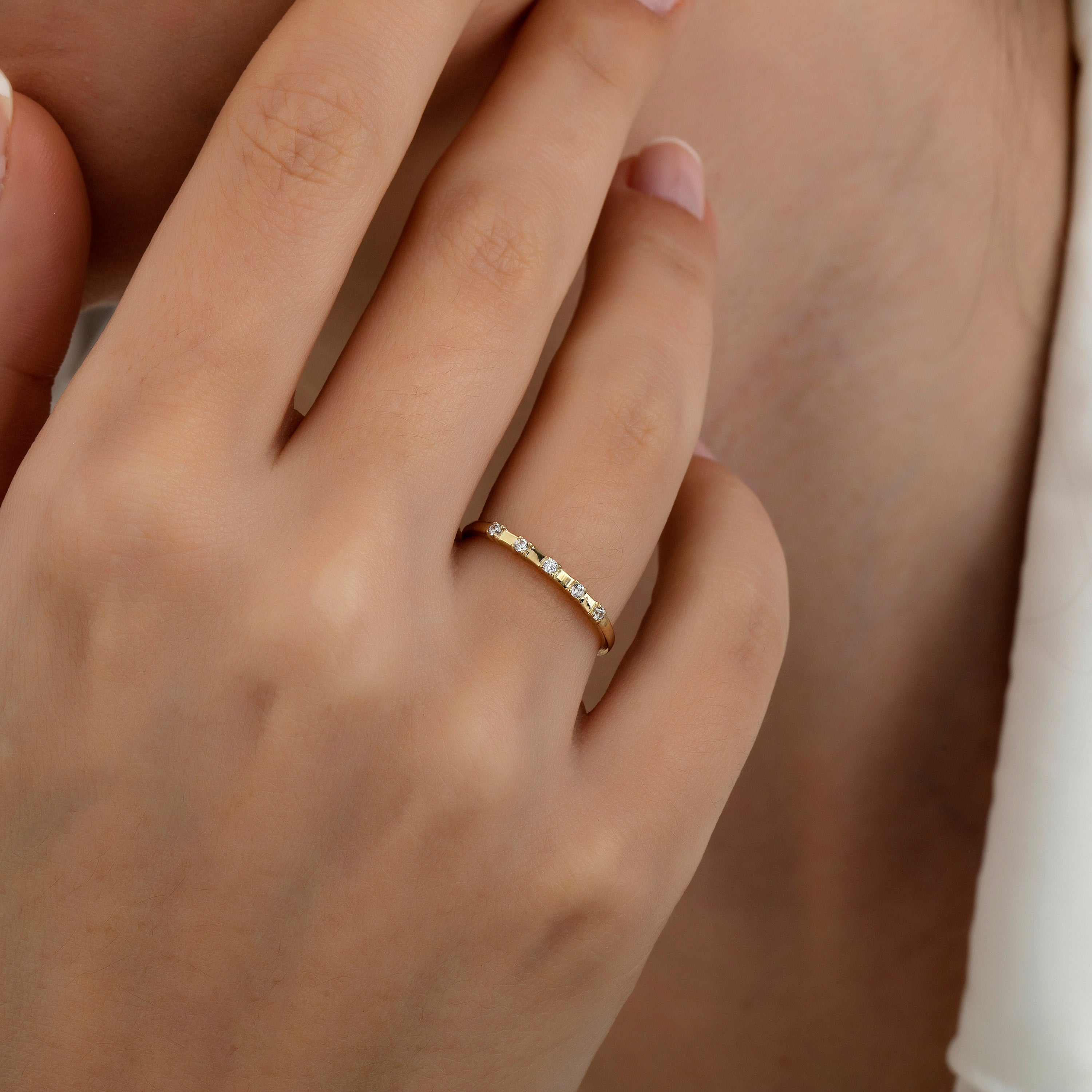 14 Ayar Altın Paris Brest Taşlı Kombinlenebilir Minimal Yüzük