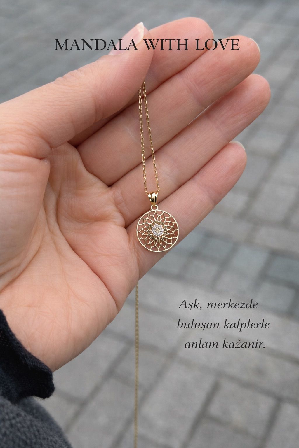 14 Ayar Altın Mandala Kolye - Heart Mandala With Love