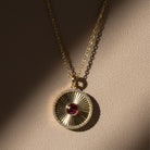 14 Ayar Altın Disc Ray Difüzyon Yakut Taş Pırlanta Madalyon Kolye