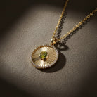 14 Ayar Altın Disc Ray Peridot Taşlı Pırlanta Madalyon Kolye