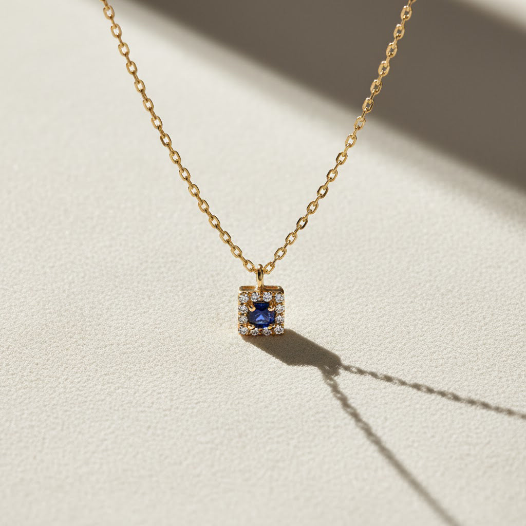 14 Ayar Altın Safir Taşlı Pırlanta Kolye