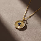 14 Ayar Altın Disc Ray Safir Taşlı Pırlanta Madalyon Kolye
