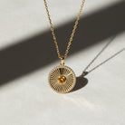 14 Ayar Altın Disc Ray Sitrin Taşlı Pırlanta Madalyon Kolye