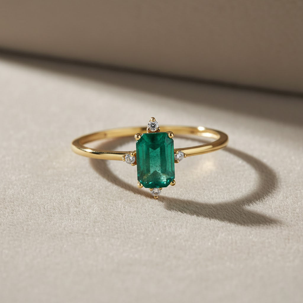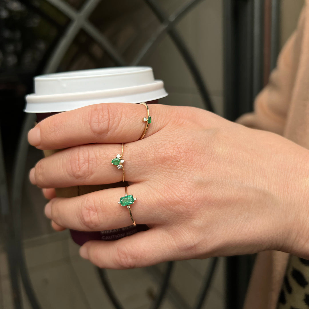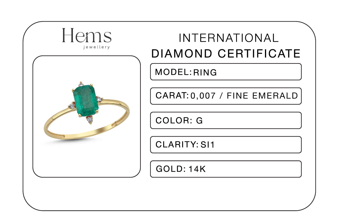 Hems Jewellery 14 Ayar Altın Klasik Zümrüt Yüzük