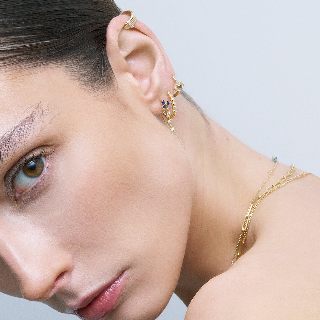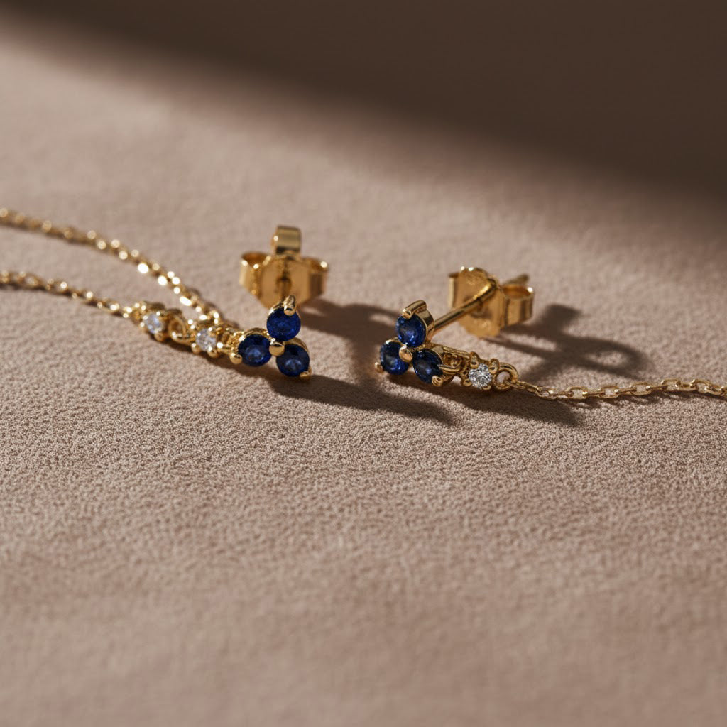 14 Karat Pırlanta Taş Karışımı Safir Küpe