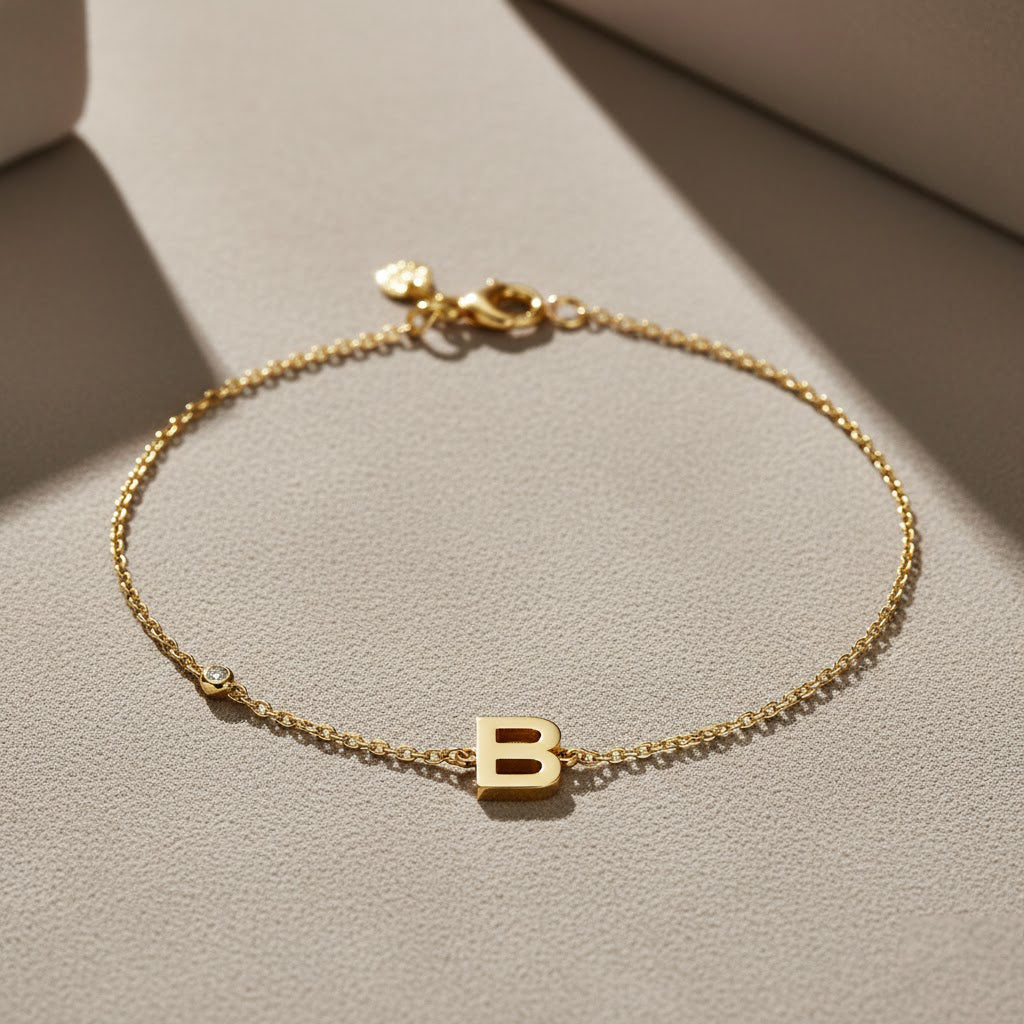 14 Ayar Altın Minimal Pırlanta Harfli Bileklik B