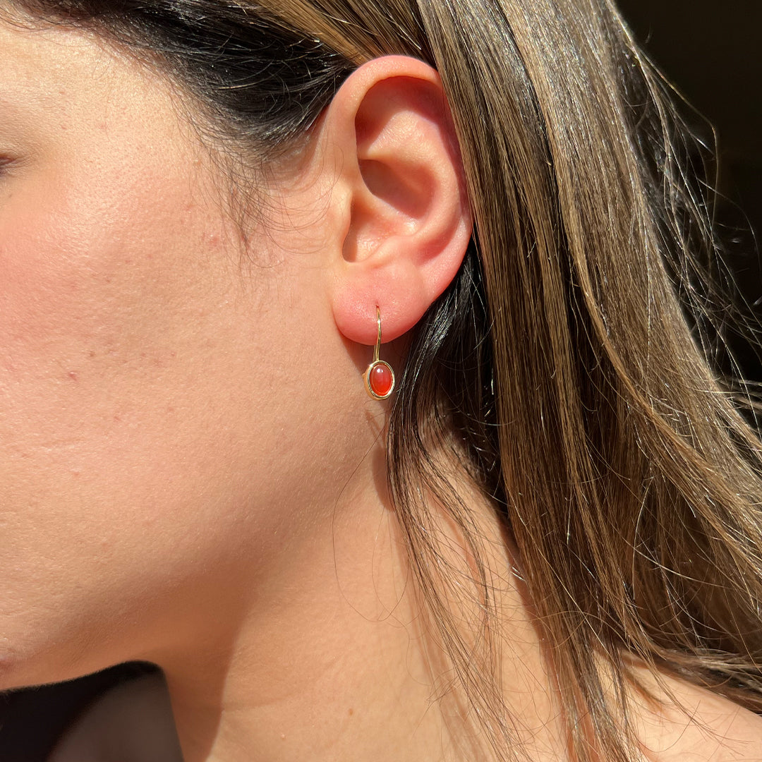 14 Ayar Altın Akik Taşlı Küpe